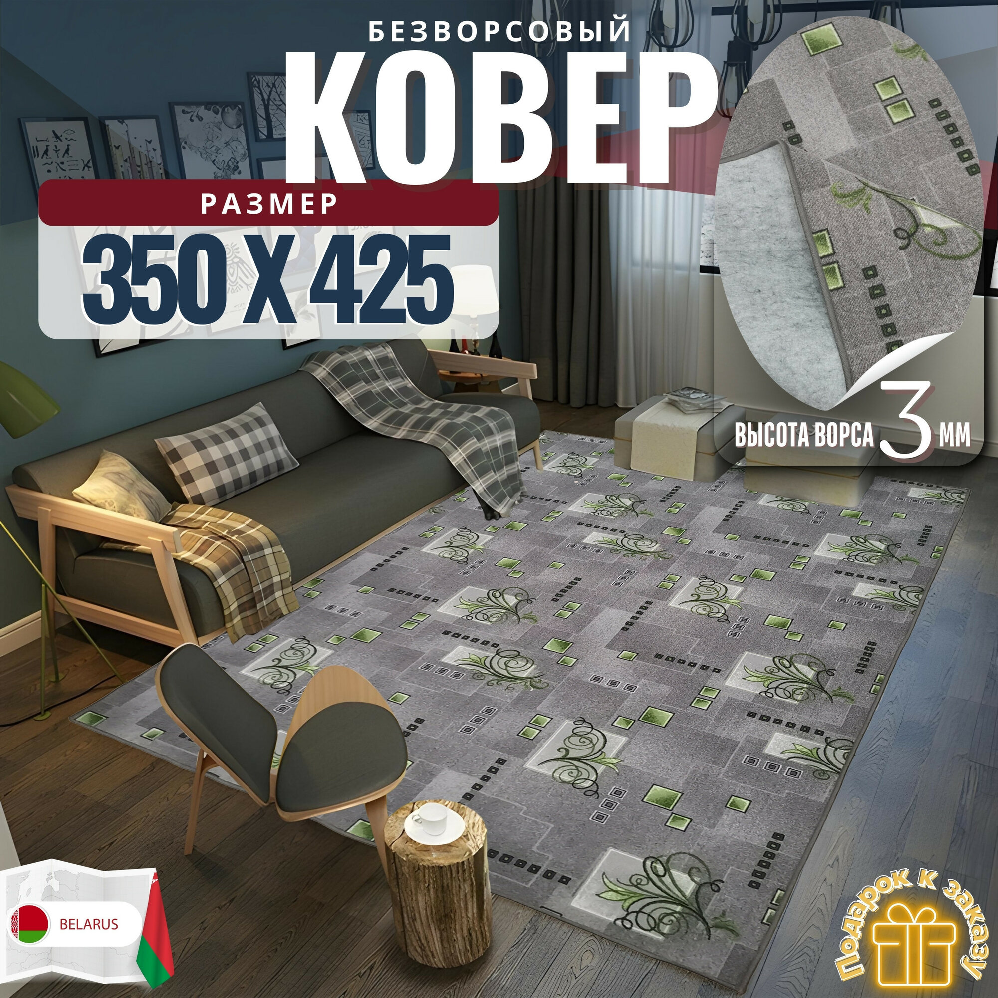 Ковер безворсовой "Узор", зелено-серый на войлоке. Размер 350х425 см информация: