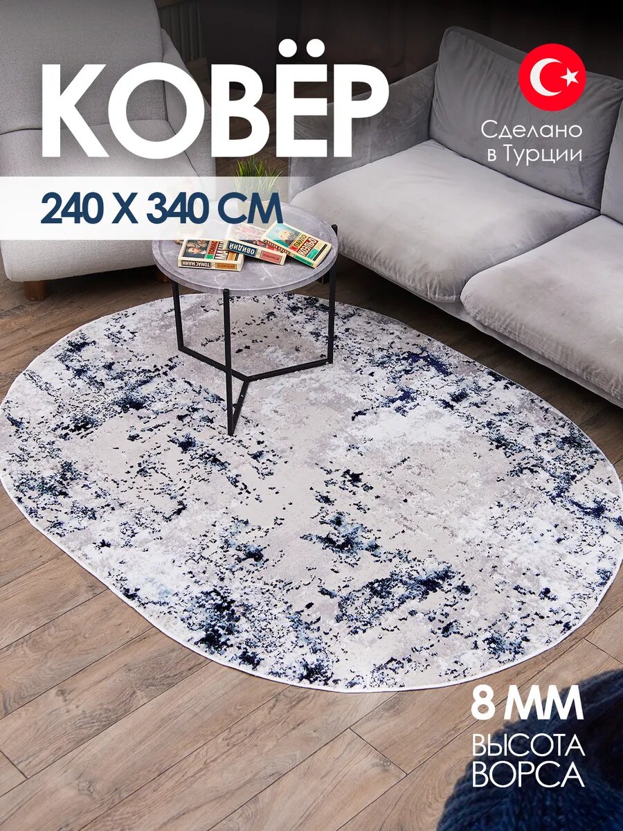 Ковер овальный, противоскользящее покрытие, гипоаллергенный, 240х340 см, сине-бежевый информация:
