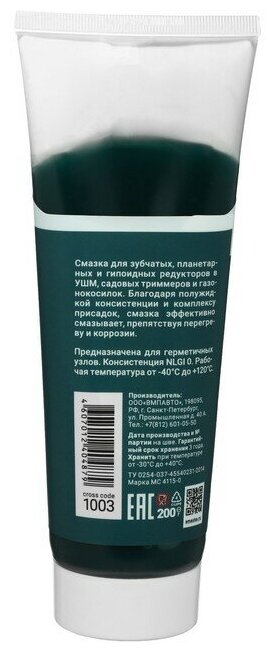 Смазка литиевая 200гр - МС 4115-0 для электроинструмента, препятствует заеданию и ржавлению зубчатых редукторов в УШМ,перфораторах, бензопилах, NLGI 0, зеленая, тюбик