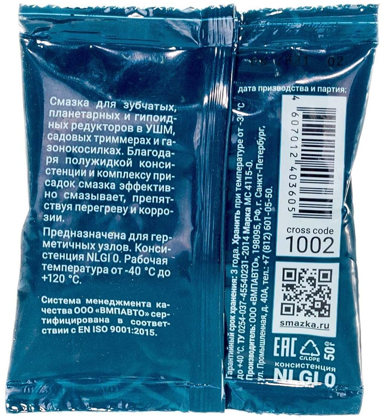 1002_смазка Для Зубчатых Редукторов Мс Ultra. 50г Стик-Пакет ВМПАВТО арт. 1002 81 ₽