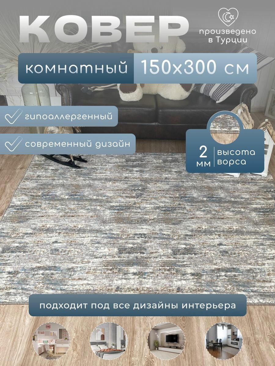 Ковер комнатный Allures, на пол, 150х300 см, синий, серый, белый информация: