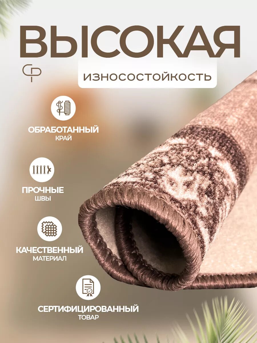 Ковер комнатный, износоустойчивый, овальный, 100х150 см, светло-коричневый 1 188 ₽