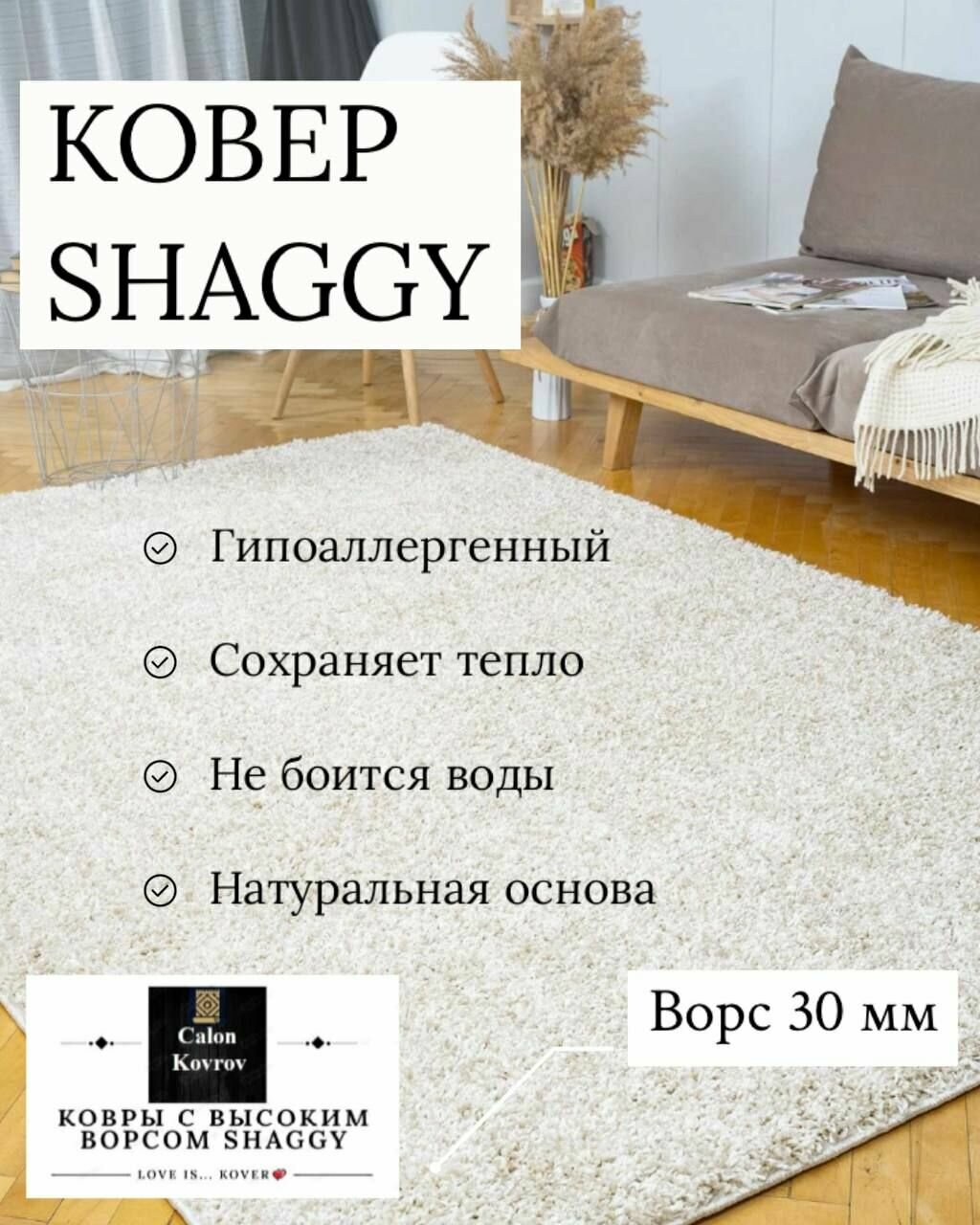 Ковер Shaggy cream-beige(кремовый) с высоким ворсом 30 мм, мягкий, пушистый, гипоаллергенный на джутовой основе 1.5 х 2.8 м 7 930 ₽