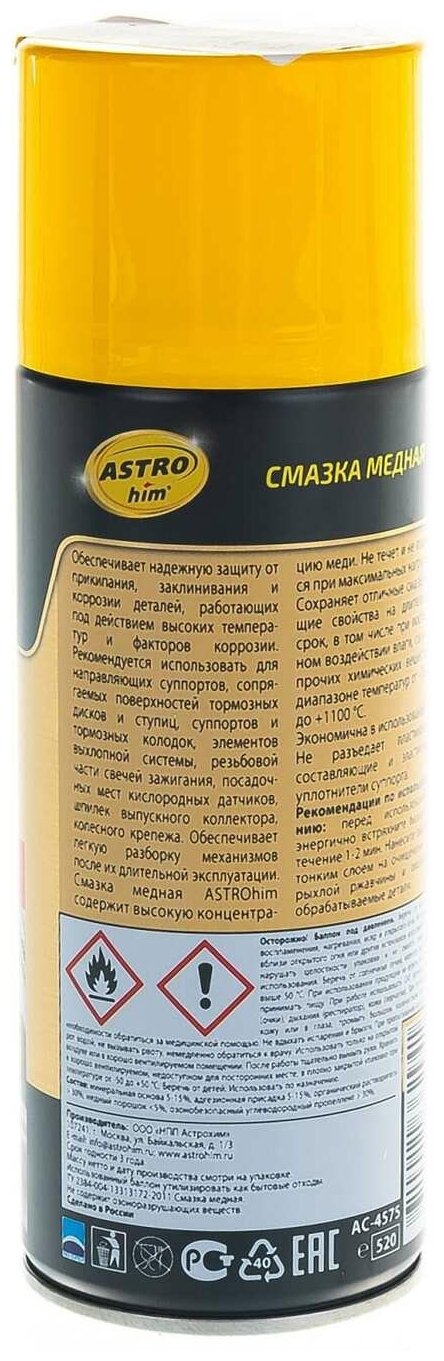 АС-4575 Смазка медная 520 мл (аэрозоль) информация: