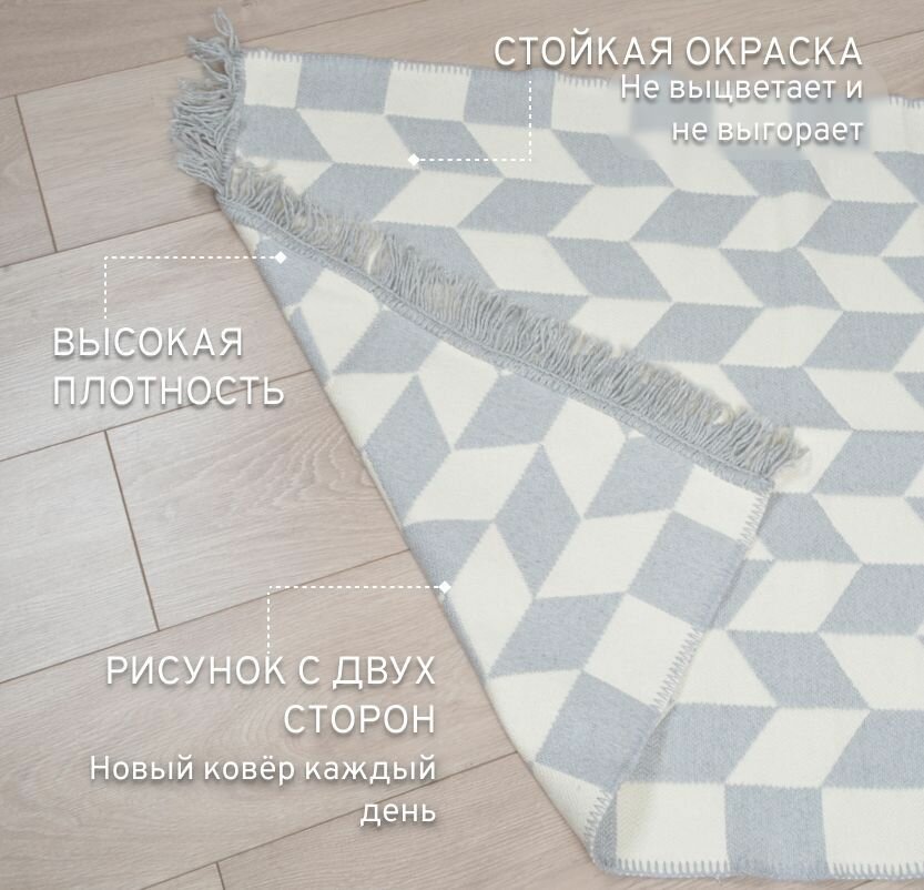10 цен на Ковер безворсовый на пол турецкий Килим, 80х150, серый