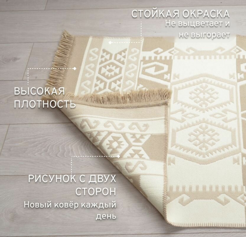 Отзывы на Ковер безворсовый на пол турецкий Килим, 60х90, бежевый, коричневый