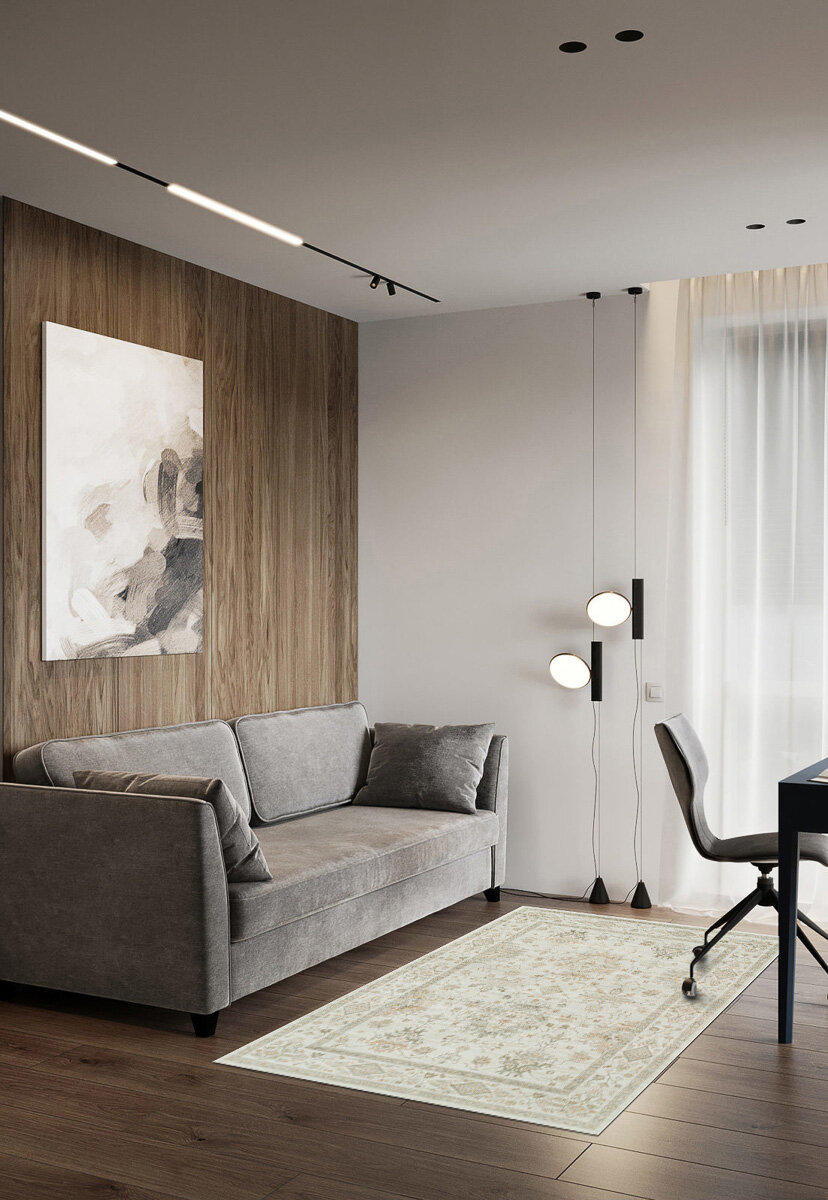 Ковер "Cream-Grey" из Турции, прямоугольный (150x200) в гостиную, зал, спальню, кухню, прихожую, кабинет и комнату