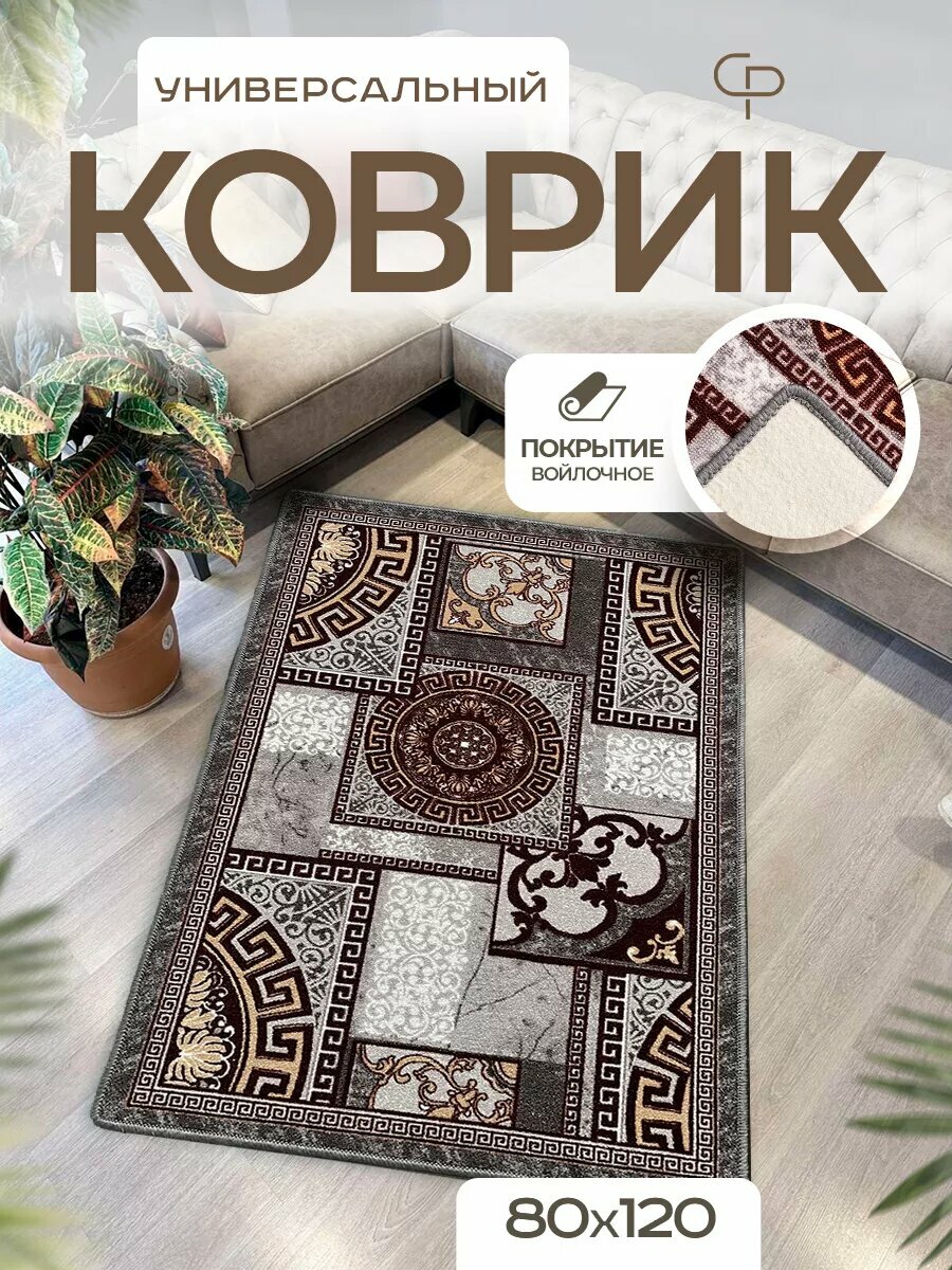 Ковер прямоугольный, войлок/полиамид, 80х120 см, бежевый/темно-коричневый 768 ₽