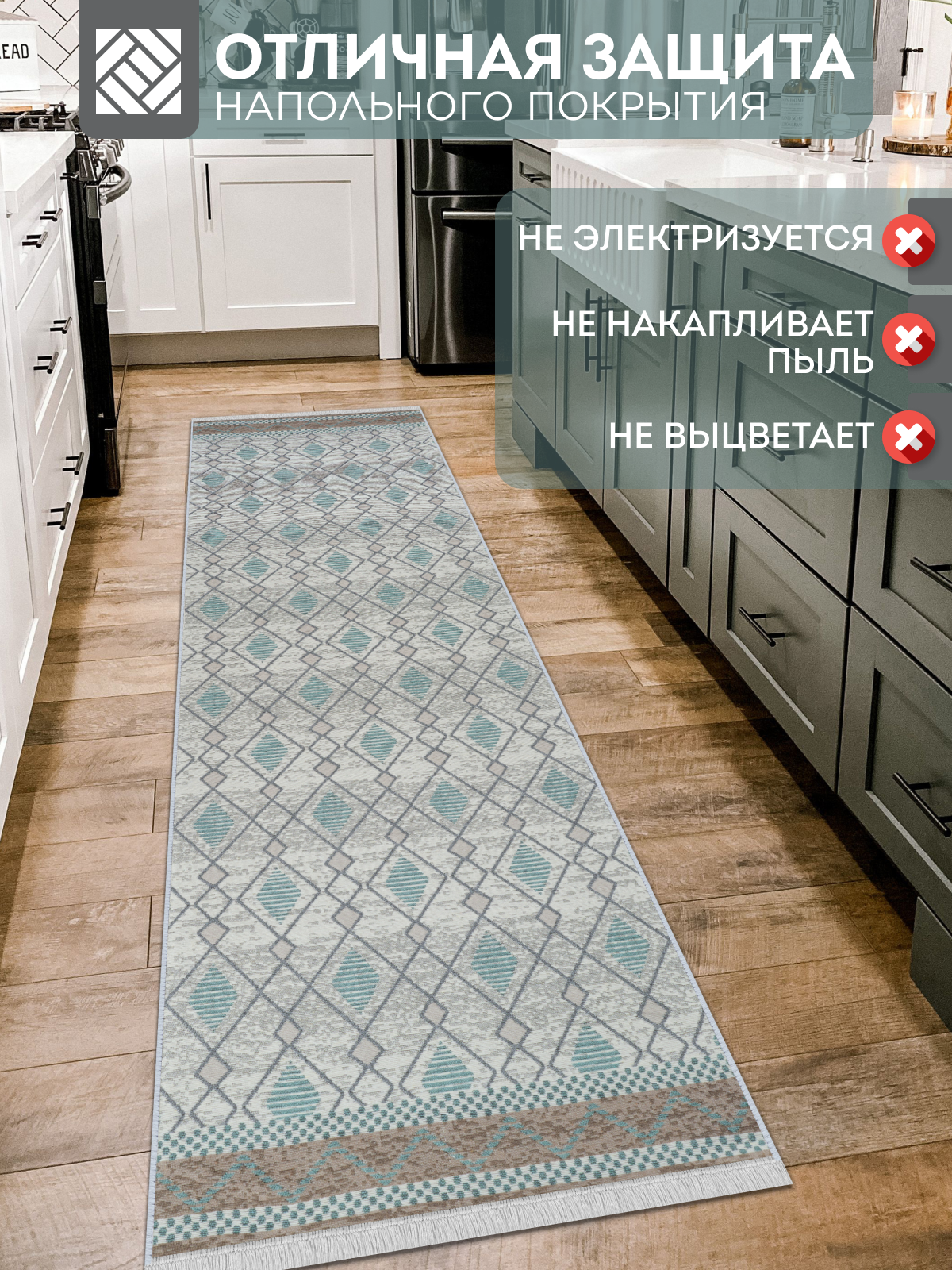 Отзывы на Ковер на пол двусторонний 80х200 см, натуральный хлопок, зеленый/серый