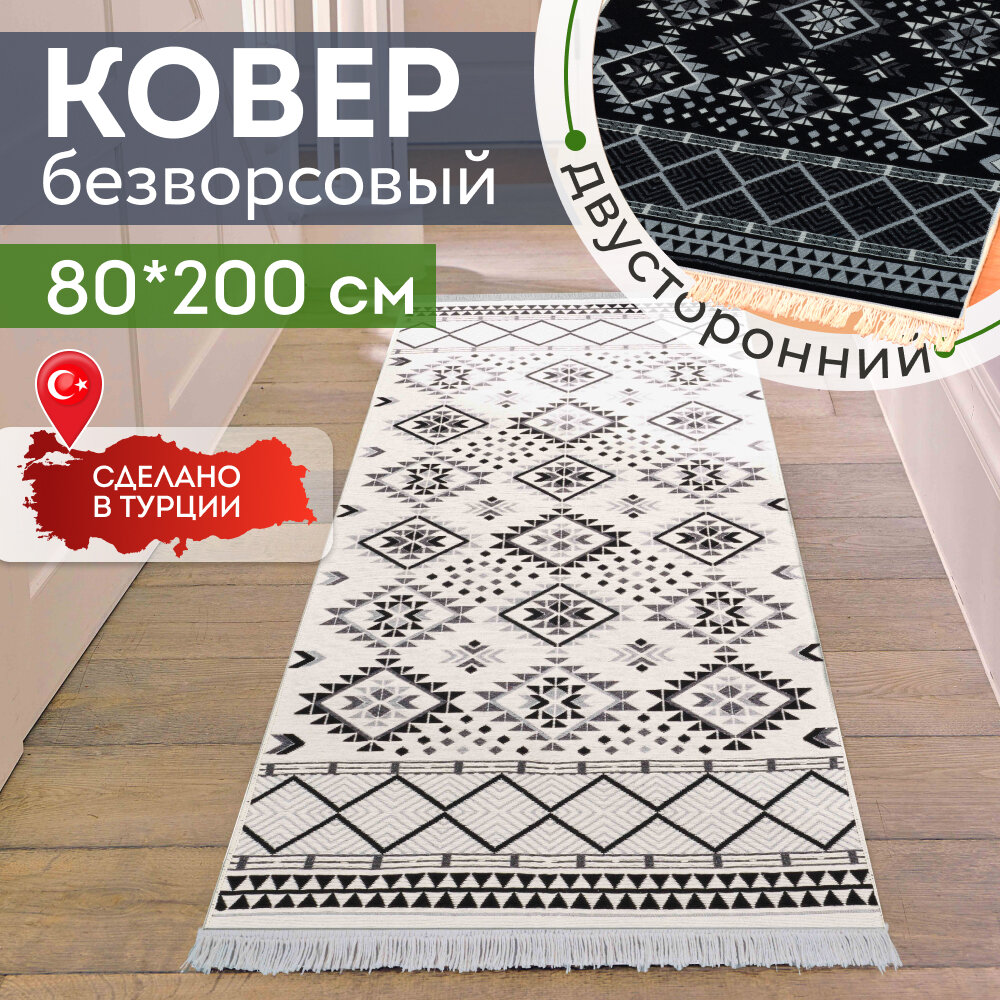 Ковер на пол двусторонний турецкий килим 80х200 см, натуральный хлопок, черно-белый 1 612 ₽