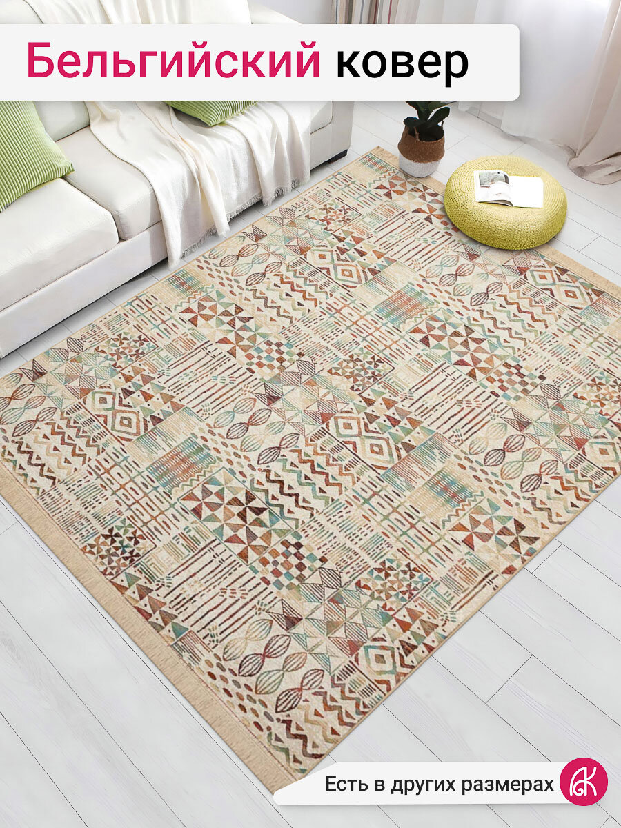 Ковер "Cream-Grey" из Турции, прямоугольный (150x200) в гостиную, зал, спальню, кухню, прихожую, кабинет и комнату
