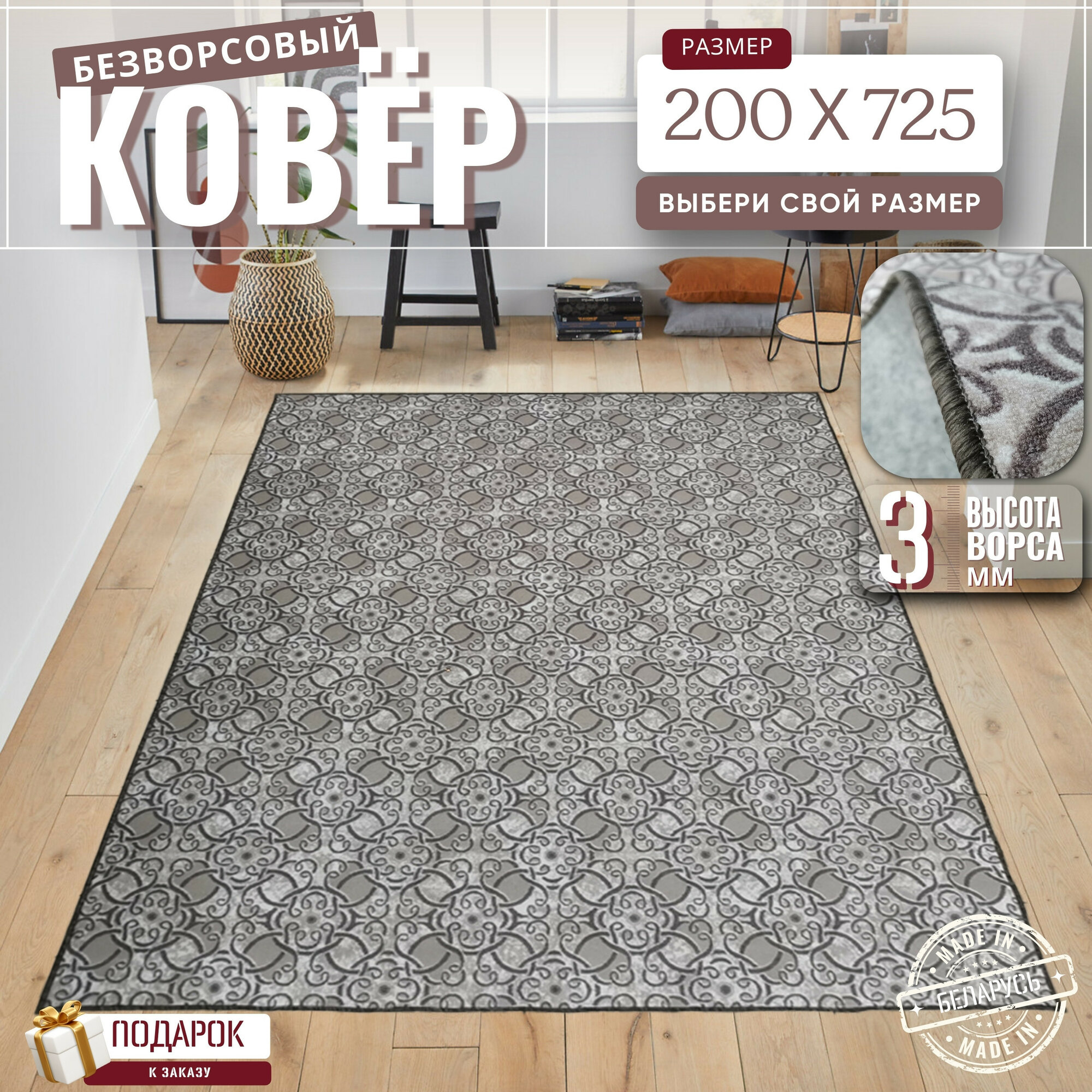 10 цен на Ковер безворсовой "Цветок", графит на войлоке. Размер 200х725 см