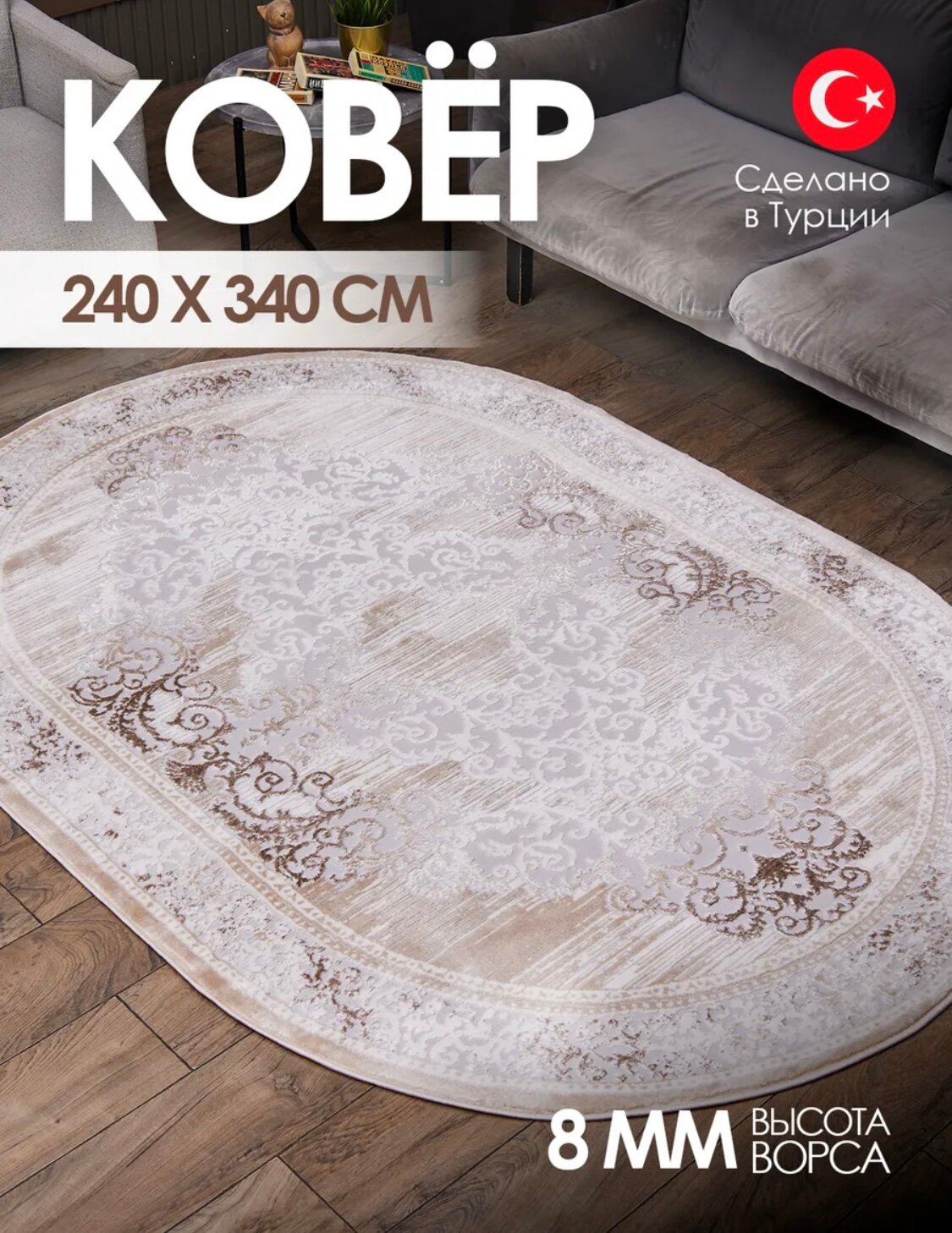 Ковер - BEIGE Турция - Овал - коллекция Elitle (240 на 340) в гостиную, зал, спальню, кухню, прихожую, кабинет, комнату. информация: