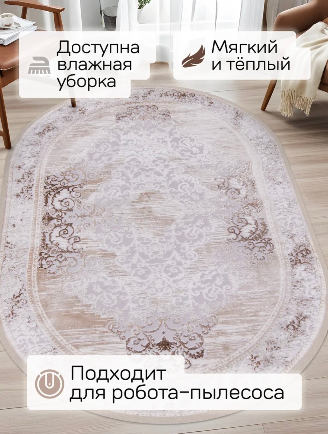 Ковер - BEIGE Турция - Овал - коллекция Elitle (120 на 180) в гостиную, зал, спальню, кухню, прихожую, кабинет, комнату. 4 752 ₽