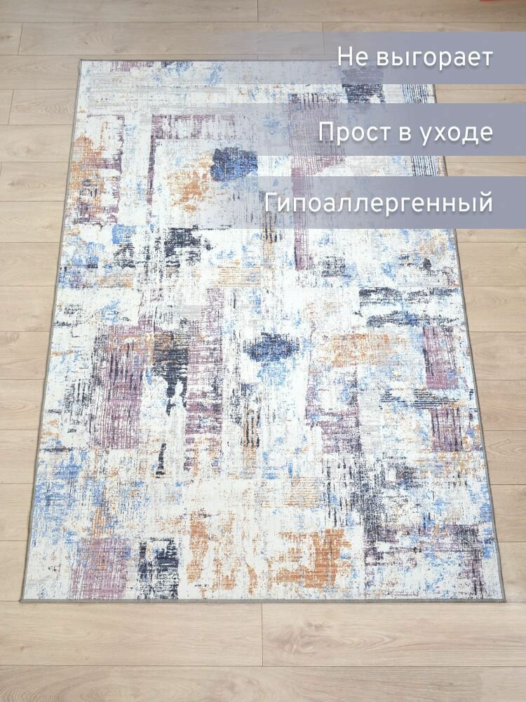 Ковер "Cream-Grey" из Турции, прямоугольный (150x200) в гостиную, зал, спальню, кухню, прихожую, кабинет и комнату