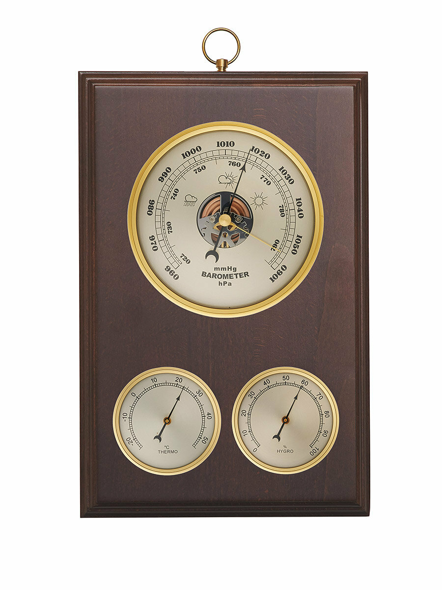10 цен на Метеостанция механическая Бриг БМ93301-ТГБ-В, настенная, черная. Натуральное дерево. Барометр, термометр, гигрометр.