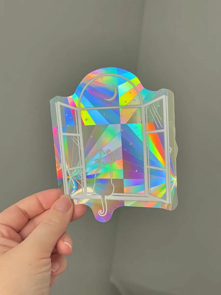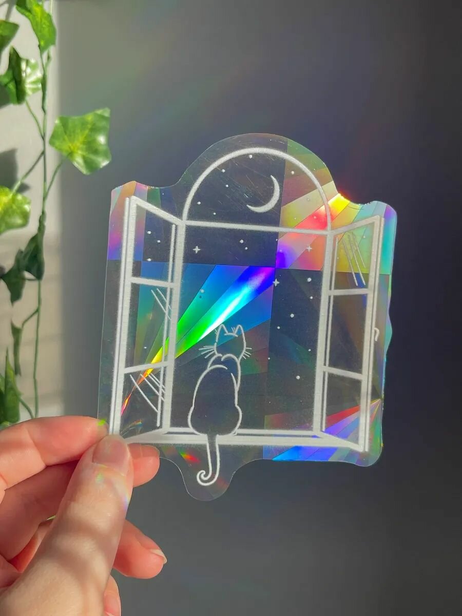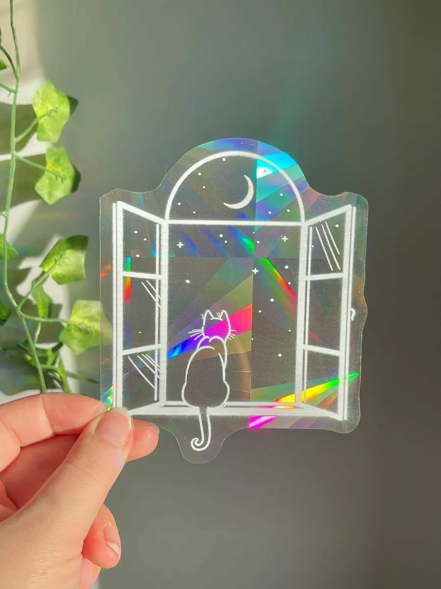 10 цен на Ловец солнца и света, радужная наклейка на окно Кот
