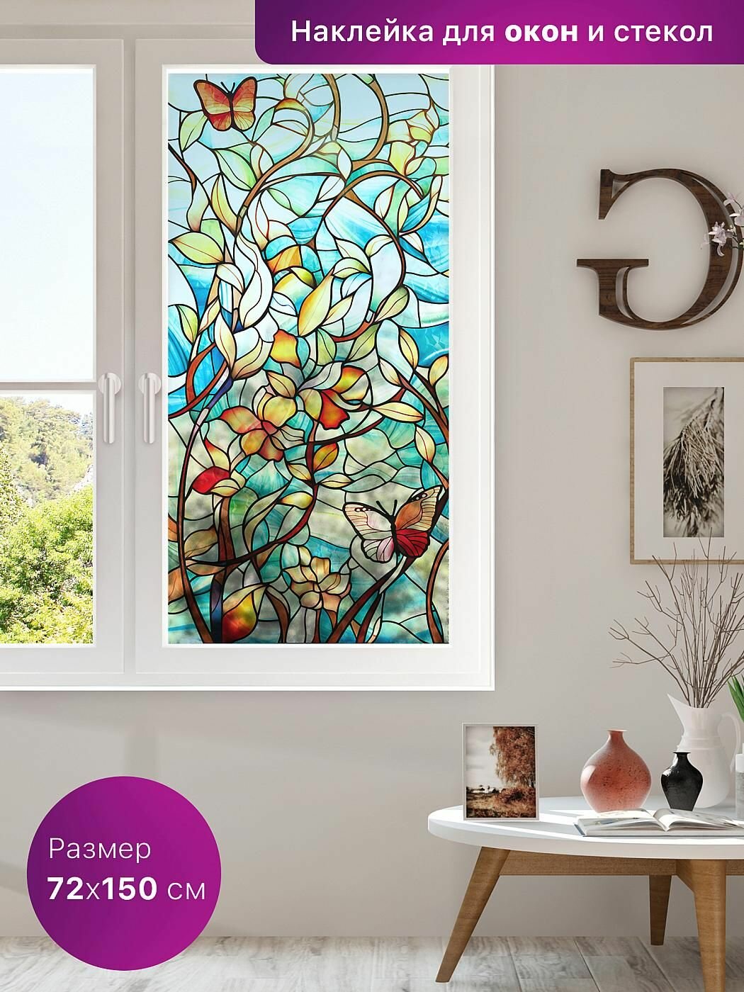 Отзывы на Солнцезащитная пленка для окон. Декоративная, самоклеящаяся витражная пленка с узором 72х150 см.