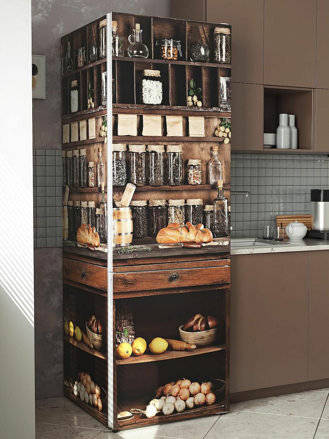Самоклеящаяся пленка на холодильник 61х180 см. Интерьерная наклейка для кухни. Декоративная наклейка для мебели. информация: