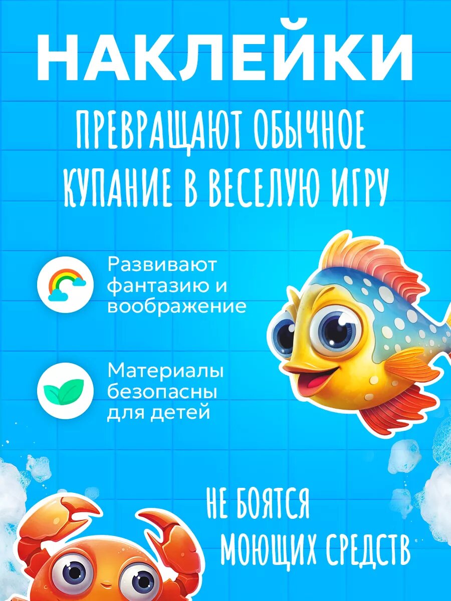 10 цен на Наклейки "Морские обитатели" рыбки детские интерьерные