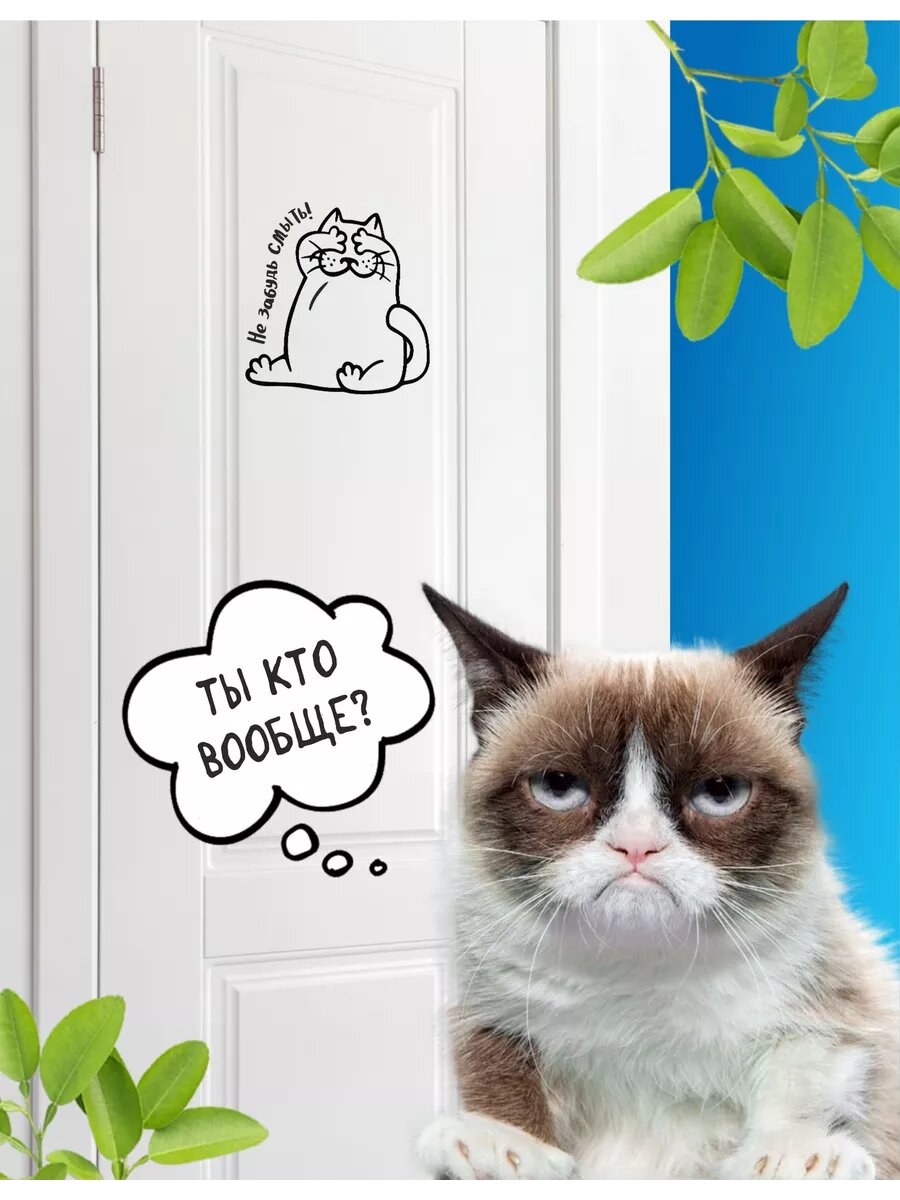 10 цен на Интерьерная наклейка прикол Кот Не забудь смыть