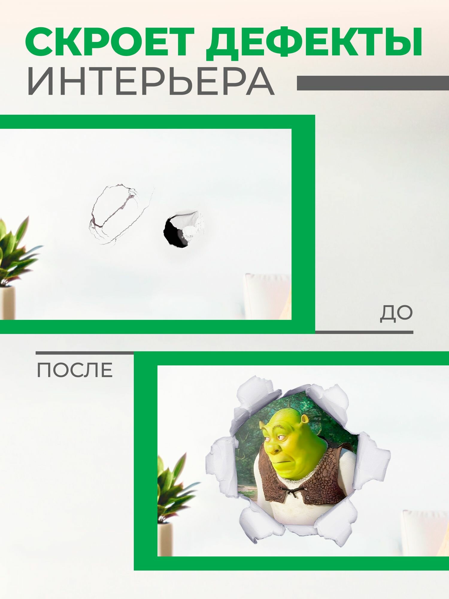 10 цен на Наклейка интерьерная на стену шрек мем
