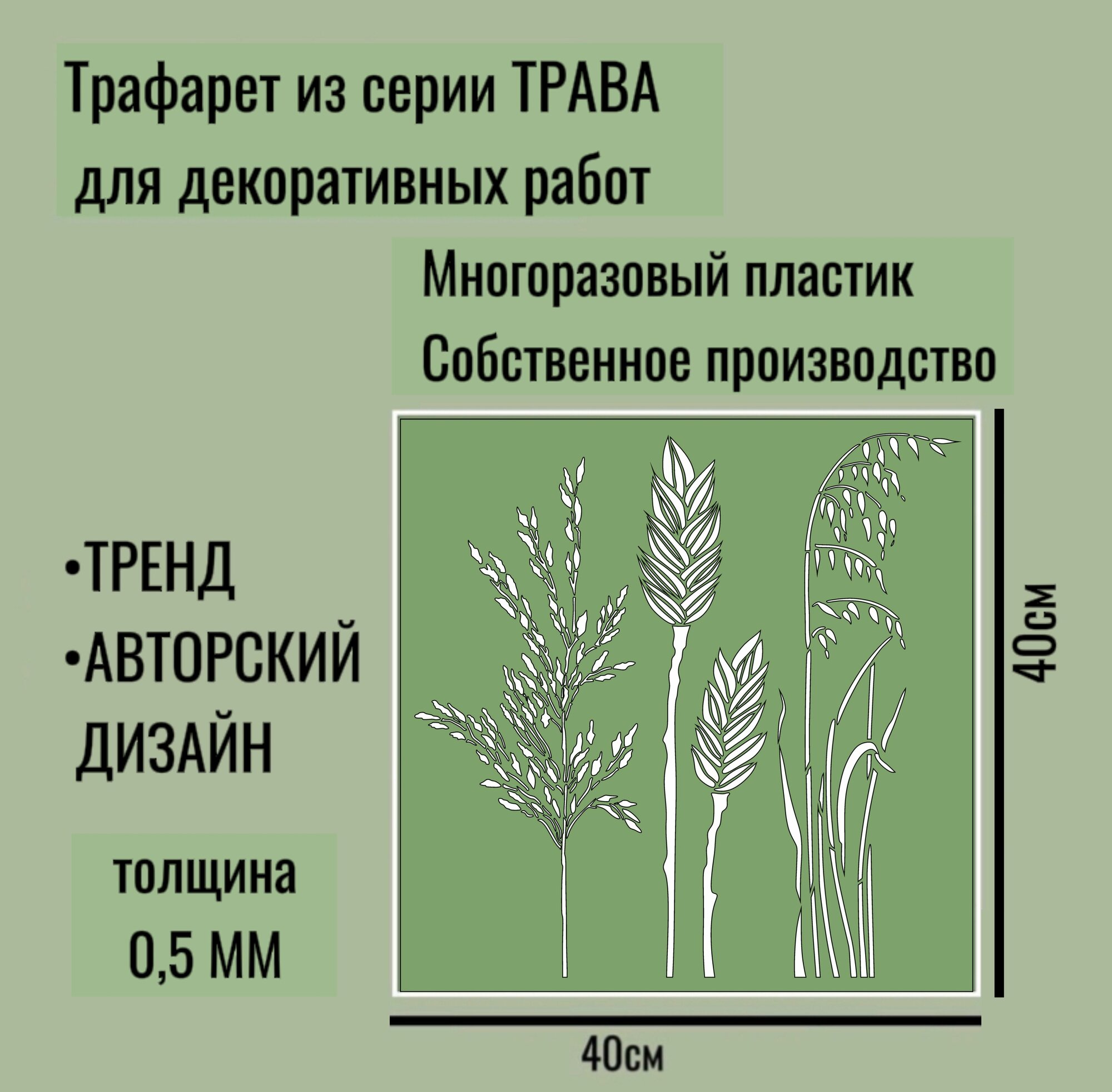 Отзывы на Трафарет для декора и стен - серия "трава" №3 толщина ПЭТ-0,5мм размер 40*40 см для штукатурки и краски