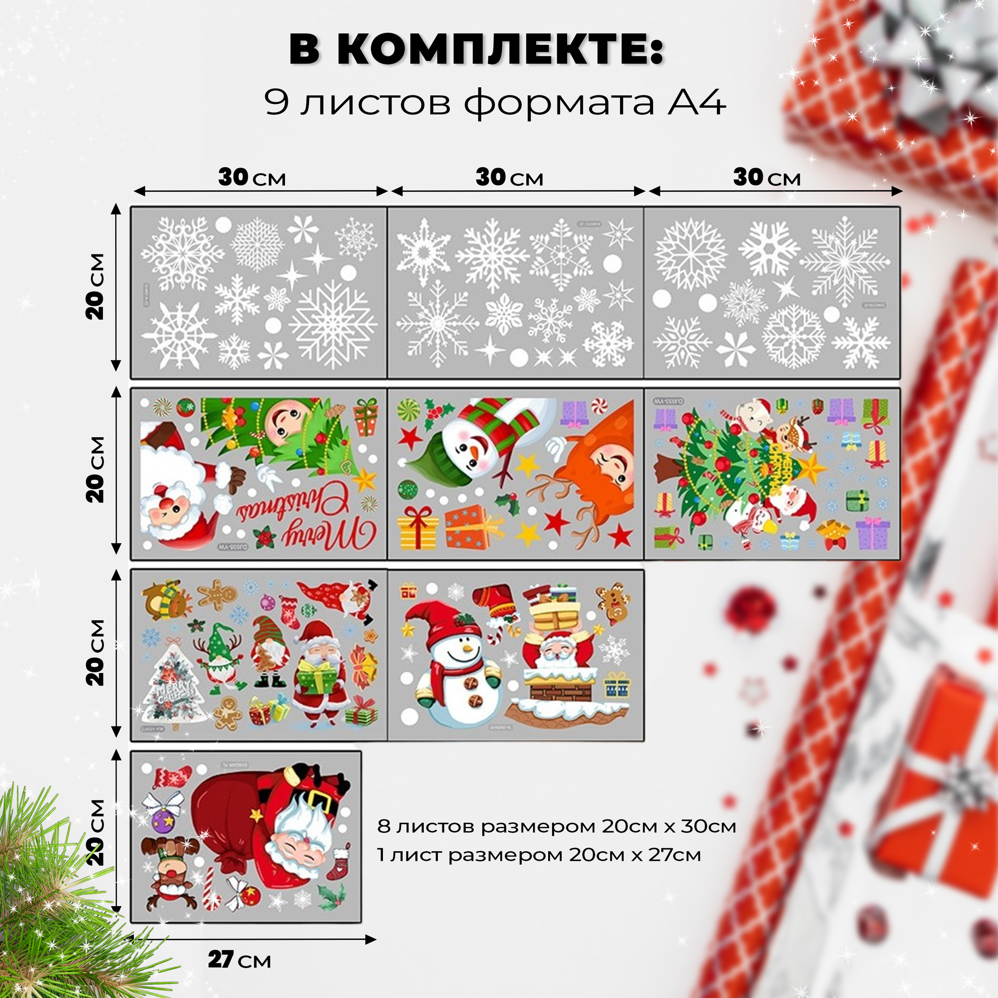 10 цен на Новогодние наклейки на окна, зеркала, мебель, бытовую технику. Большой набор из 168 штук.