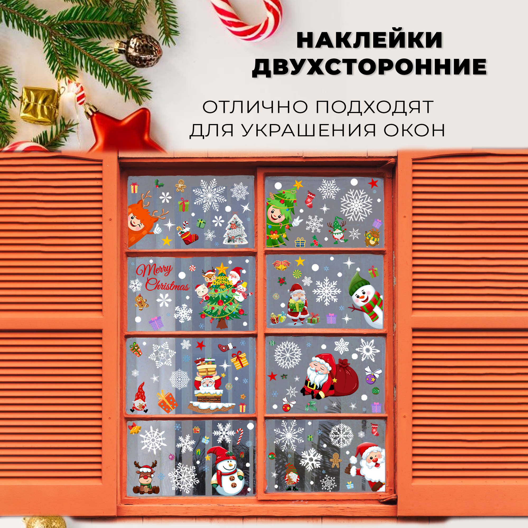 Новогодние наклейки на окна, зеркала, мебель, бытовую технику. Большой набор из 168 штук. информация: