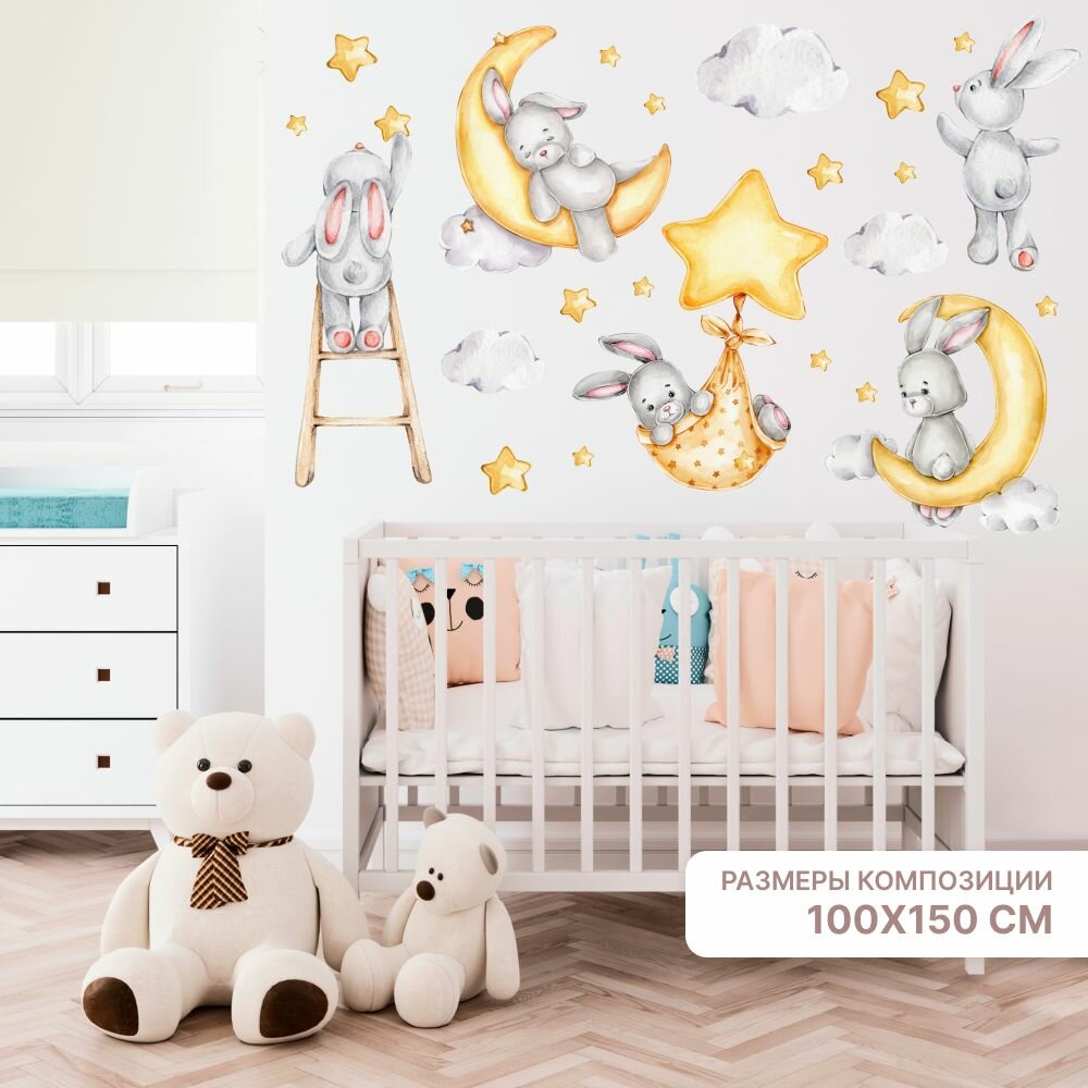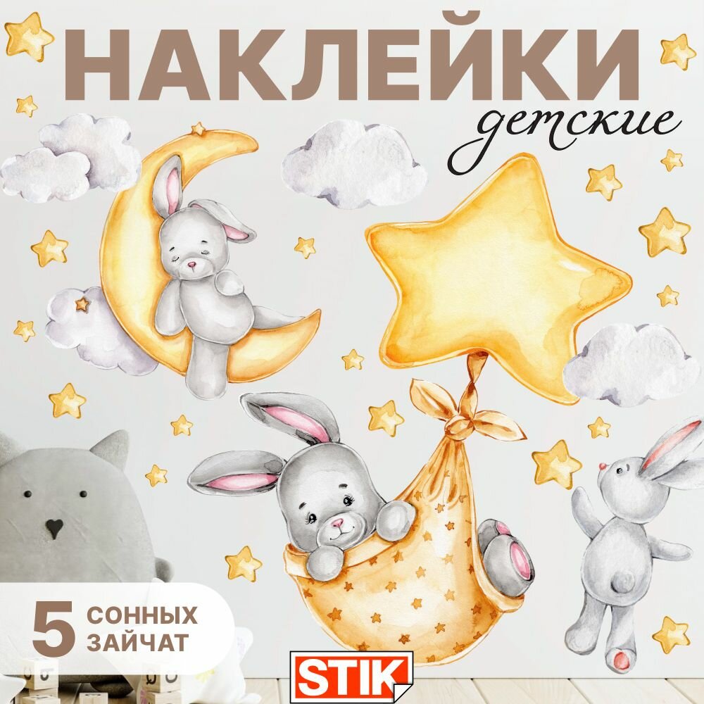 10 цен на Наклейки для детей интерьерные "Звезды с зайчиками", Stik. Декор и интерьер для комнаты на стену детские.