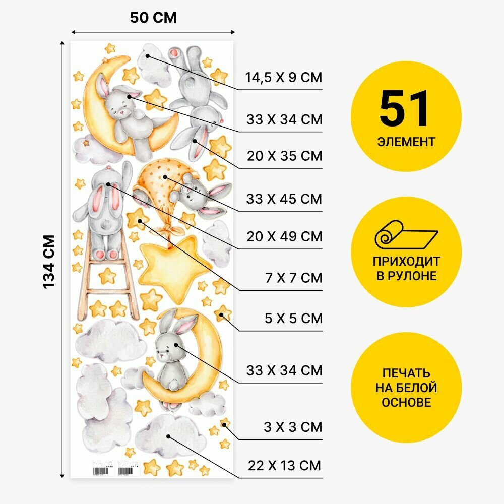 Наклейки для детей интерьерные "Звезды с зайчиками", Stik. Декор и интерьер для комнаты на стену детские. информация: