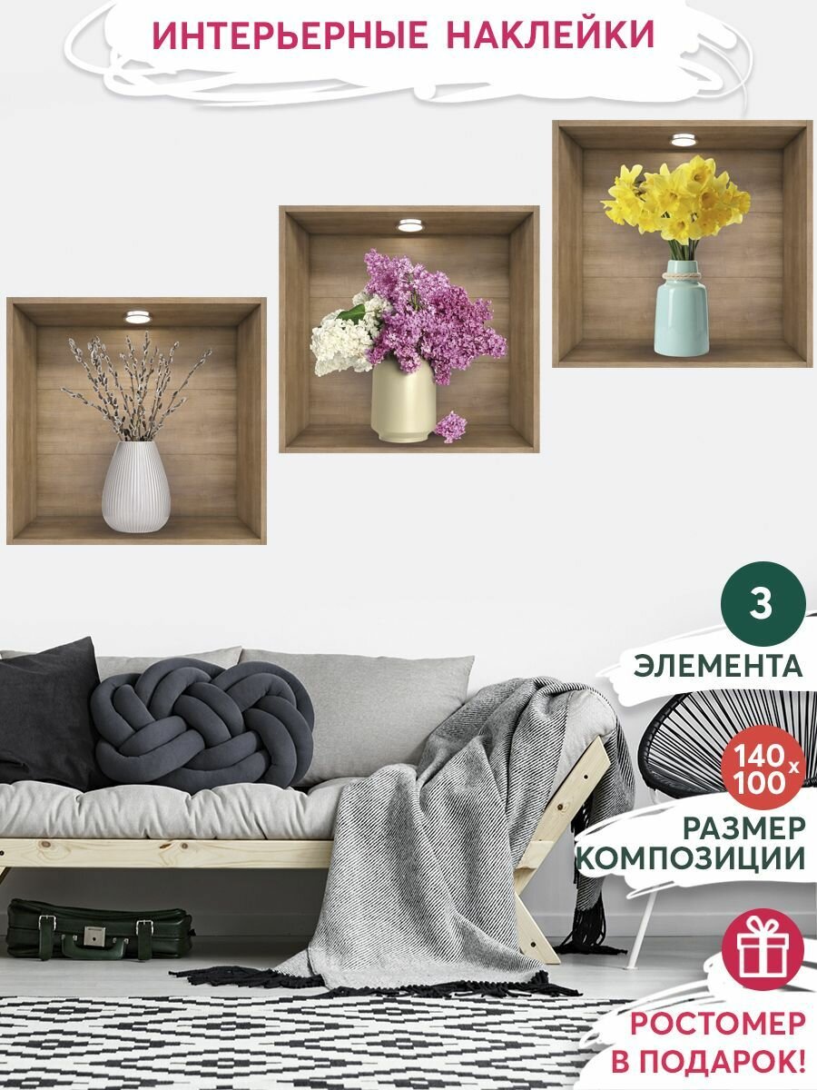 10 цен на Наклейки на стену интерьерные, цветы в вазе