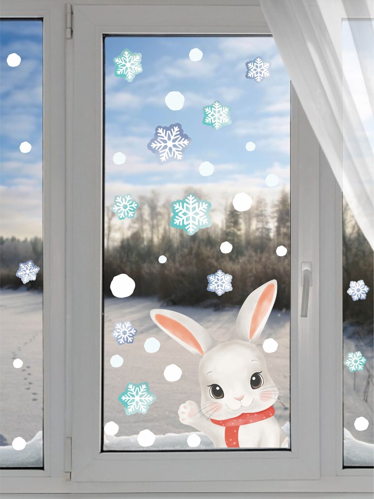 10 цен на Новогодний декор наклейки на окно Зайка Lisadecor