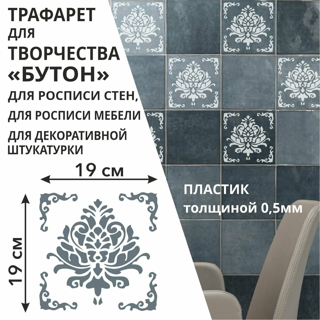 Отзывы на Трафарет "Бутон" 21х21 см - для творчества и декора стен, мебели, плитки и штукатурки. Многоразовый, пластик 0,5 мм