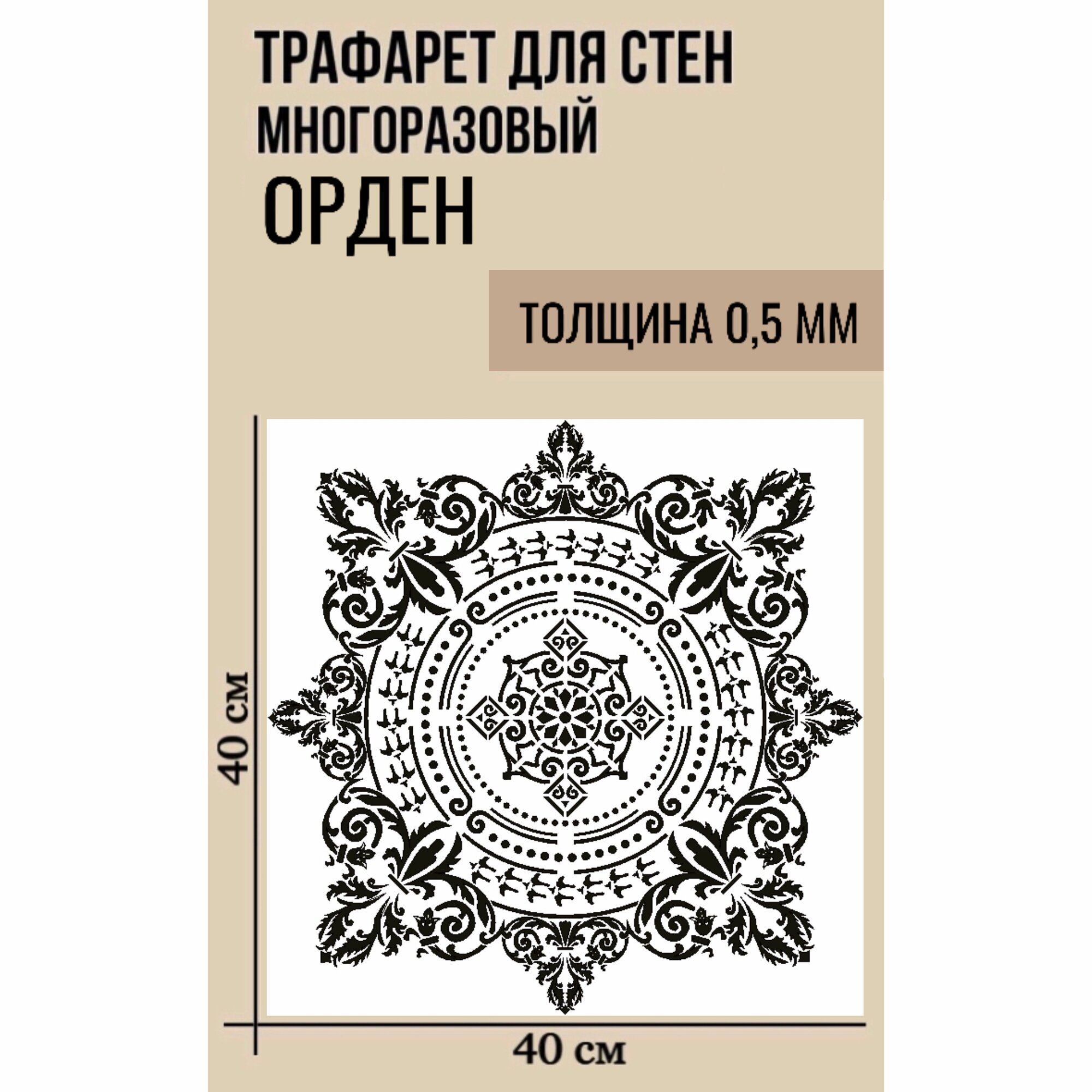 10 цен на Трафарет для декоративной штукатурки, пластиковый, многоразовый, универсальный для стен и декора интерьера. Узор Орден, 40х40 см, толщина 0,5 мм