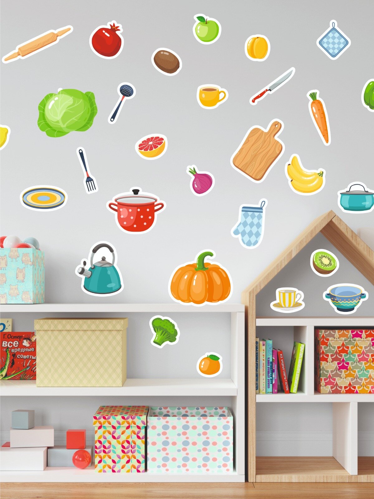 10 цен на Наклейки на стену Посуда, овощи и фрукты, декор для детской Lisadecor