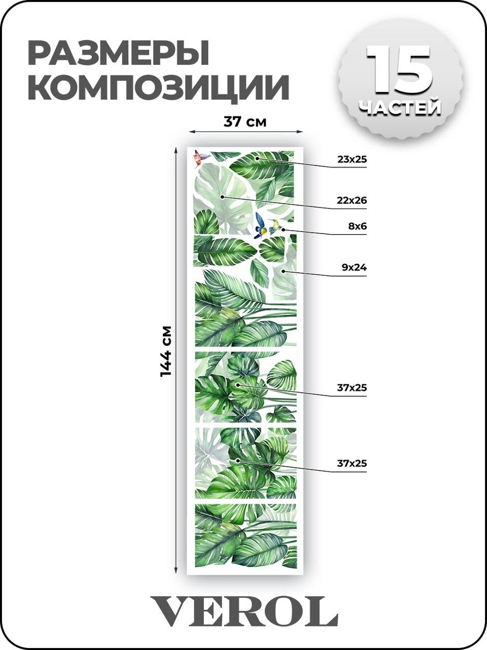 Наклейки интерьерные VEROL "Тропические листья" на стену, декор для дома, стикеры самоклеящиеся, украшения для комнаты, подарок информация: