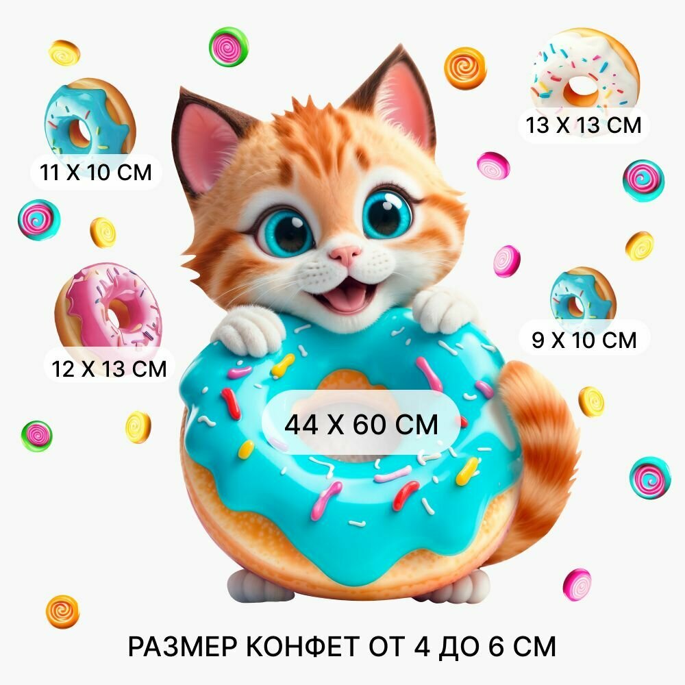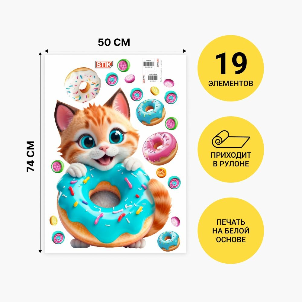 Детские интерьерные наклейки для дома "Кот с пончиком" Stik, самоклеящийся декор для оформления комнаты, кухни . информация: