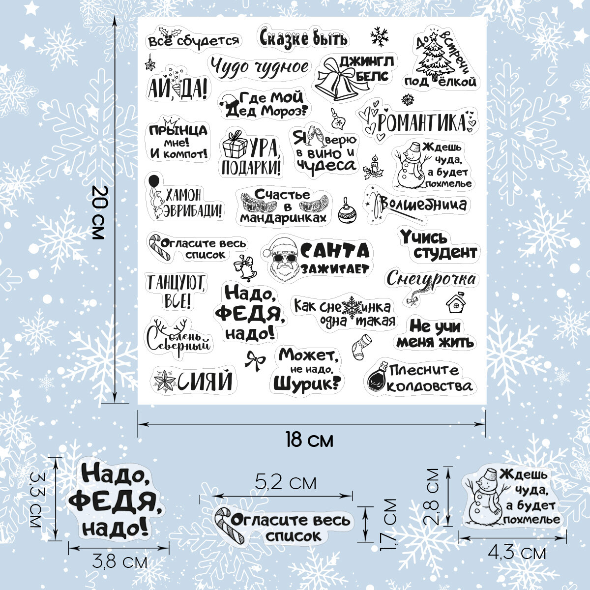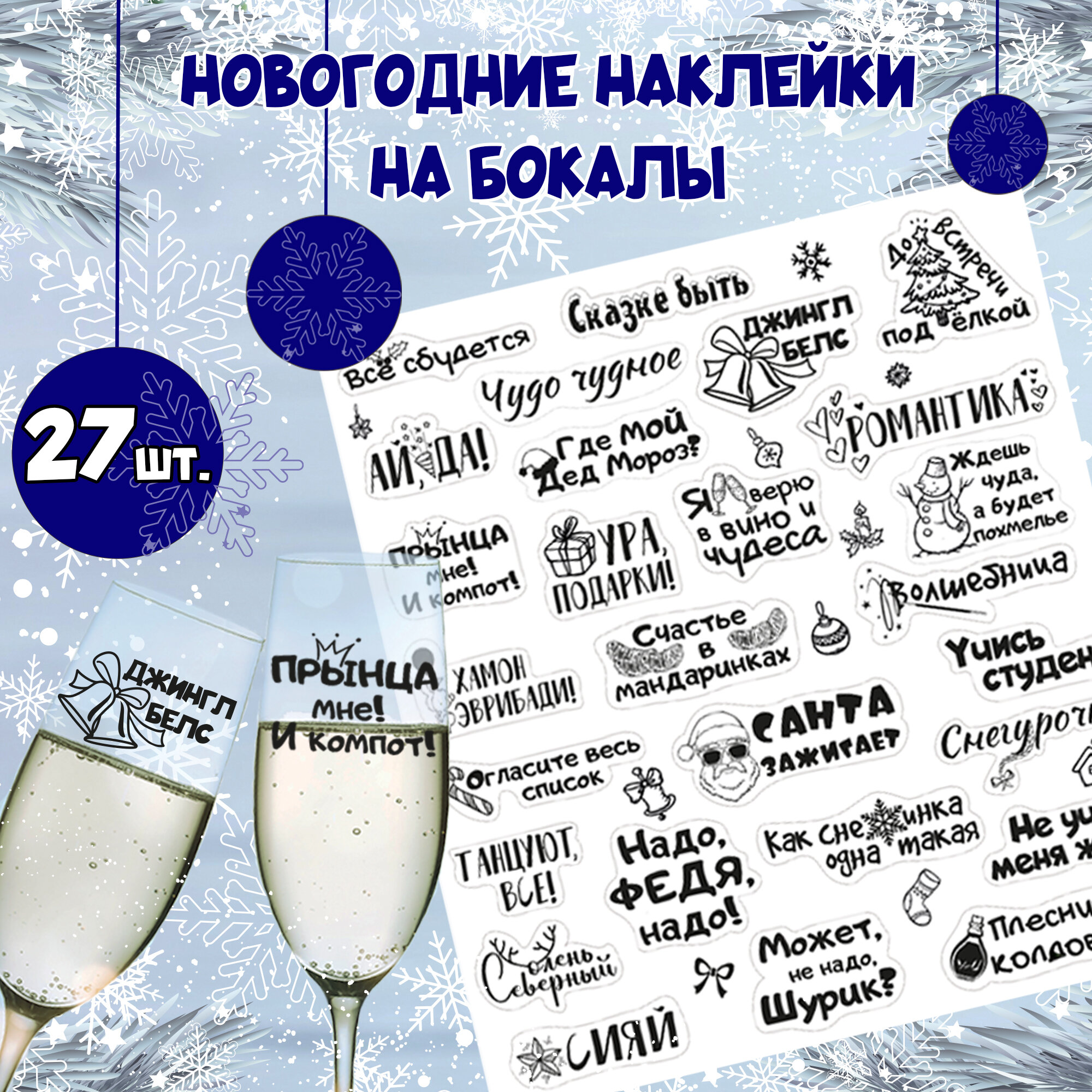 Новогодние наклейки на бокалы, 27 штук на листе информация: