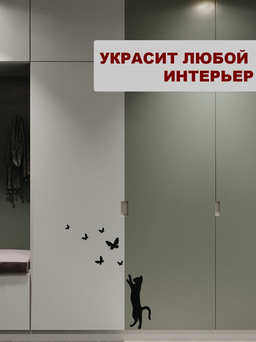 10 цен на Наклейка интерьерная , КОТ С бабочками, для дома, на машину, на холодильник, на стекло