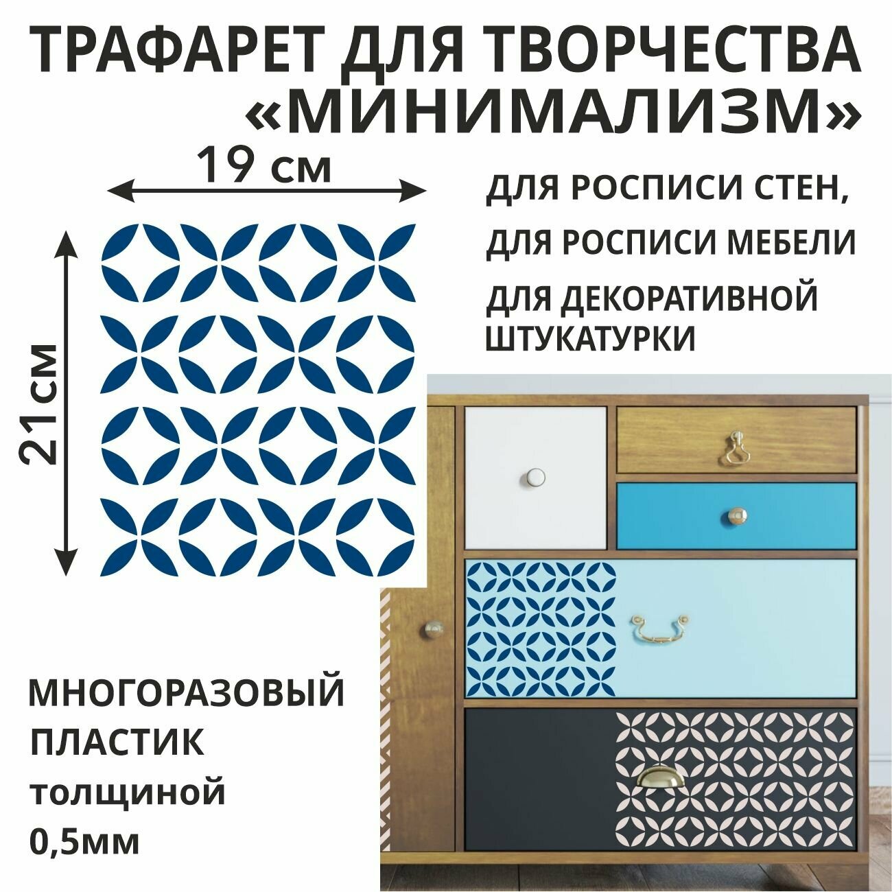 10 цен на Трафарет Минимализм 21х23 см - для творчества и декора стен, мебели, плитки и штукатурки. Многоразовый, пластик 0,5 мм
