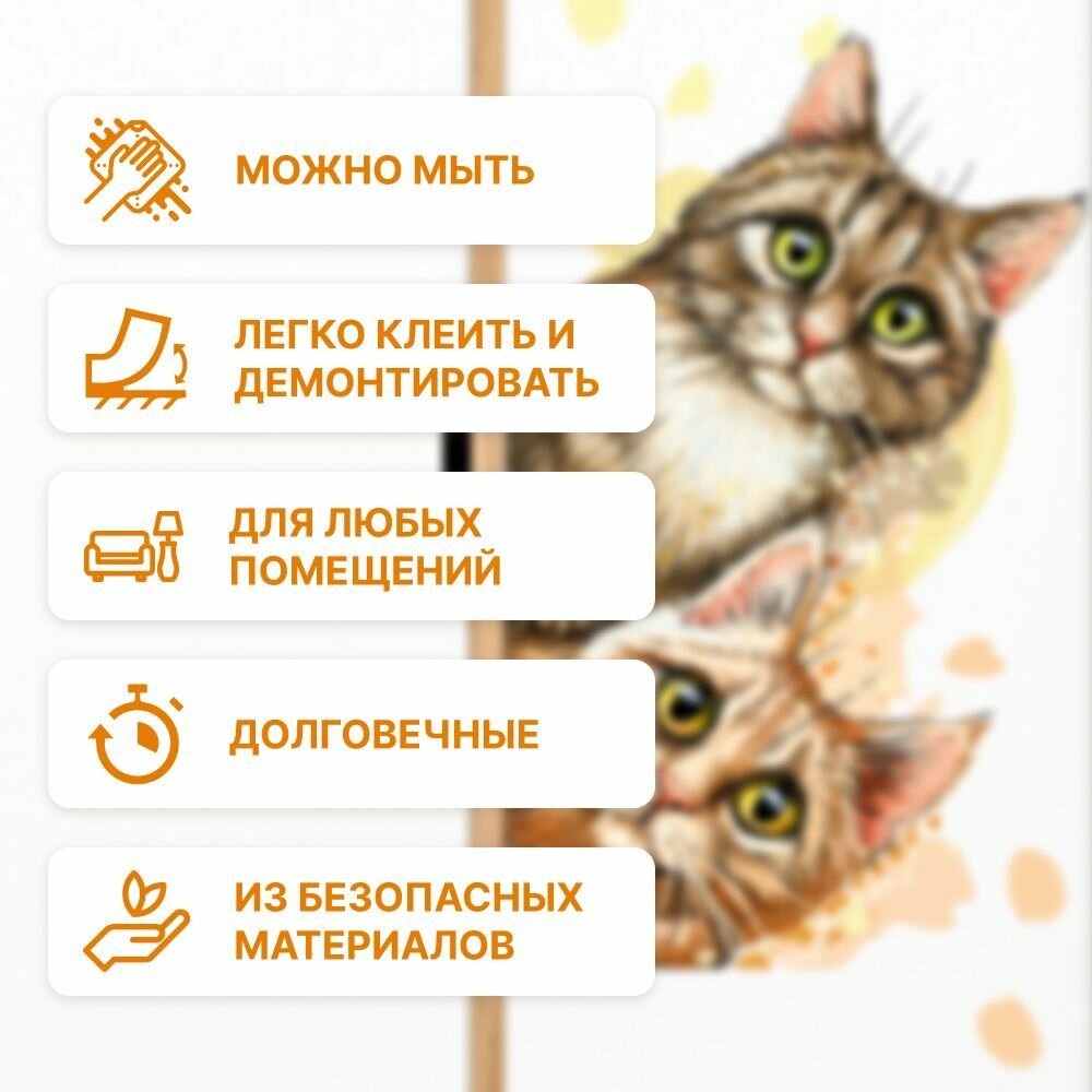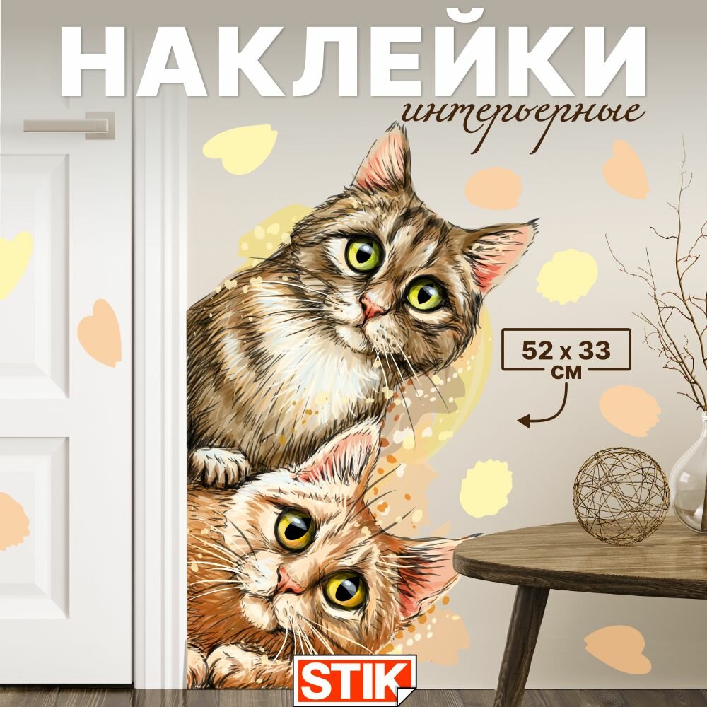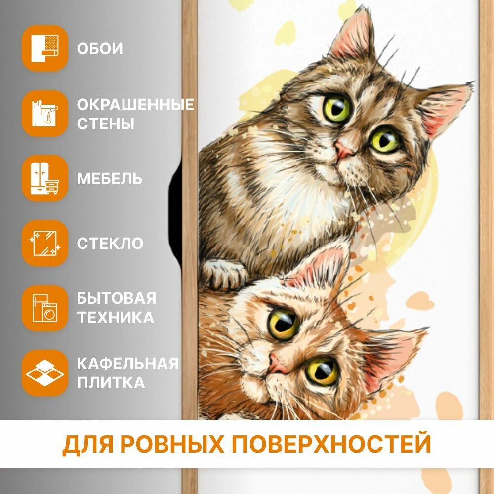 Наклейки интерьерные "Котики" Stik, на стену для декора большие, на холодильник и окна. Наклейки в ванную и кухню, детские и водостойкие. информация: