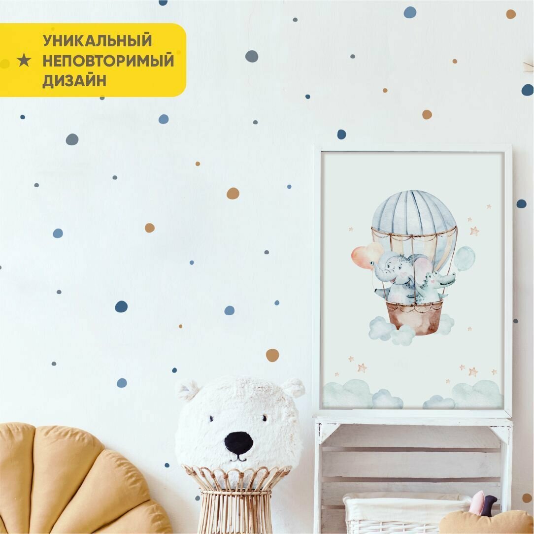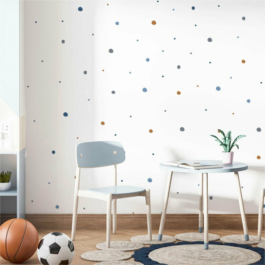 Интерьерные наклейки на стену - Кружочки синие и бежевые / Декор для детской комнаты информация: