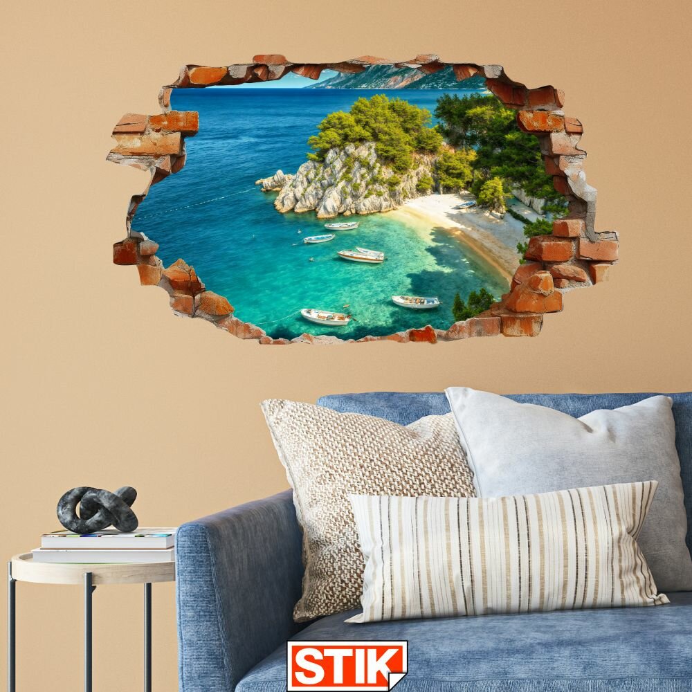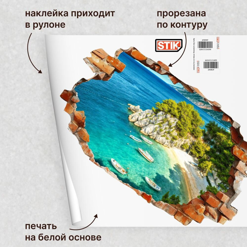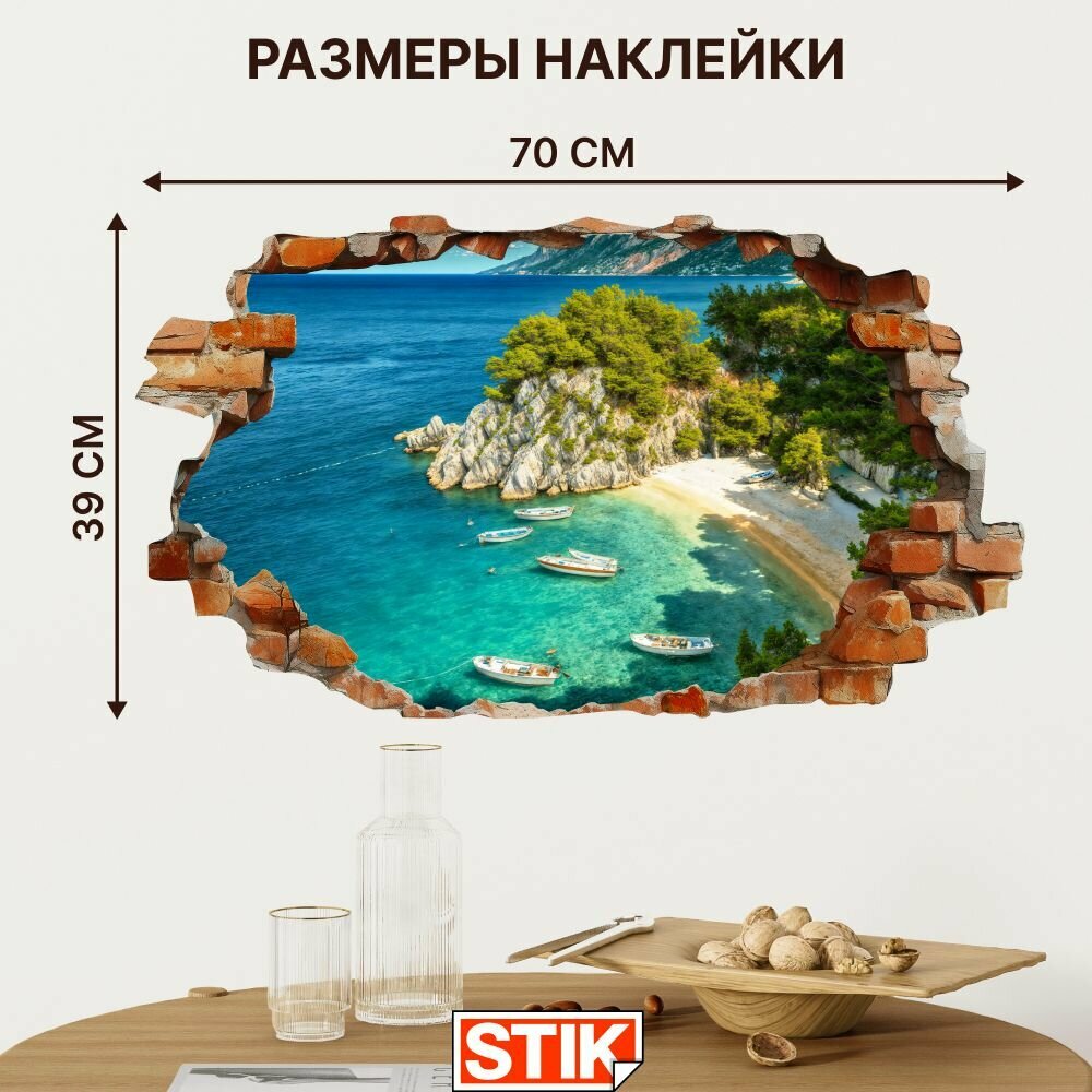 Наклейка для интерьера на стену "Пляж" Stik, виниловое украшение на окно в кухню, гостиную, детскую. Декор на дверь и мебель. информация: