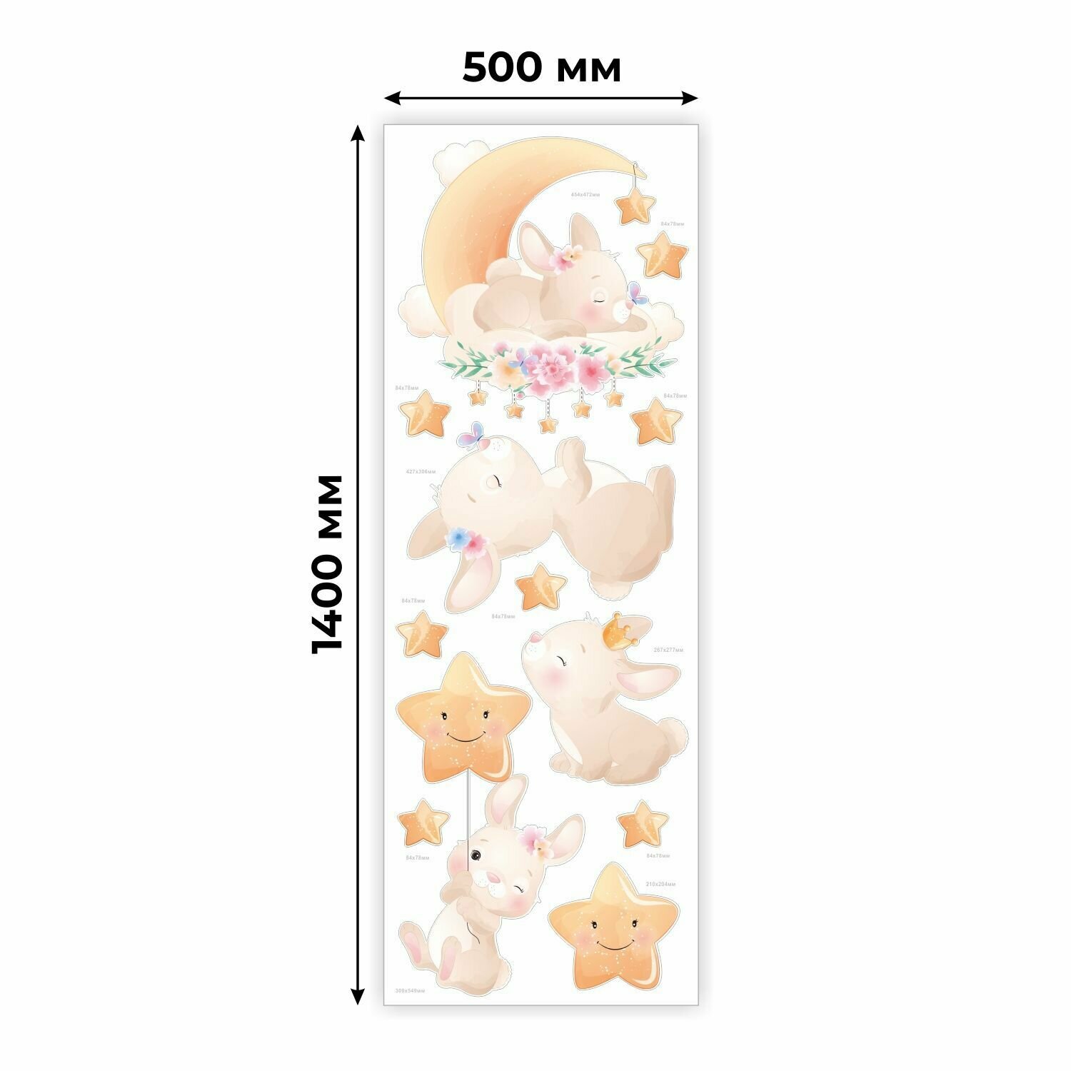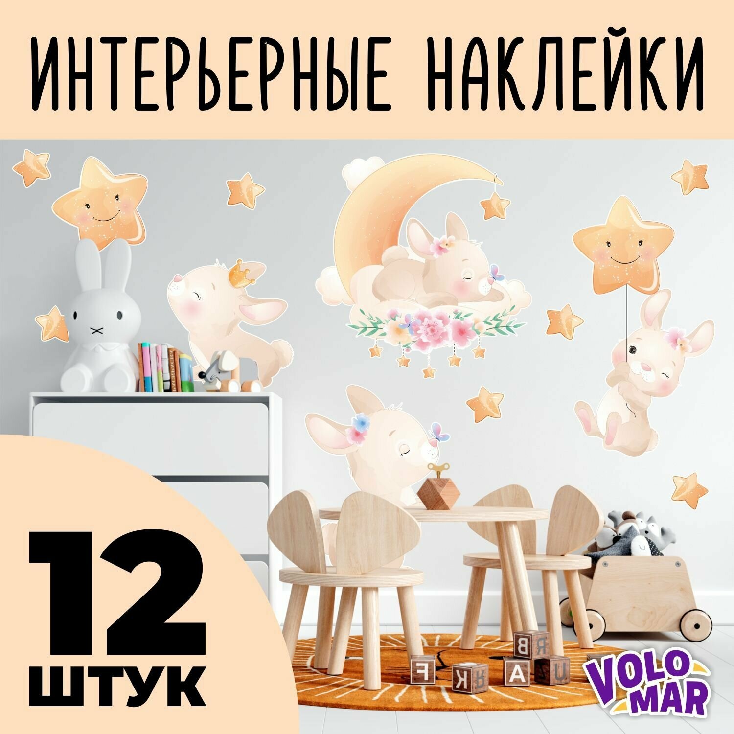 Интерьерные наклейки VoloMar "Зайки", бежевые, матовые, фабричное производство, 12 штук информация: