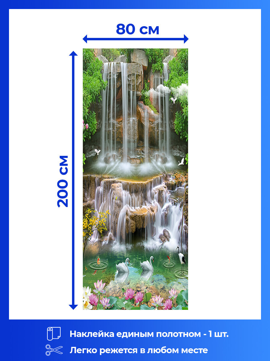 Наклейка интерьерная на дверь "Изумрудный водопад", самоклеющаяся 80х200 см. информация: