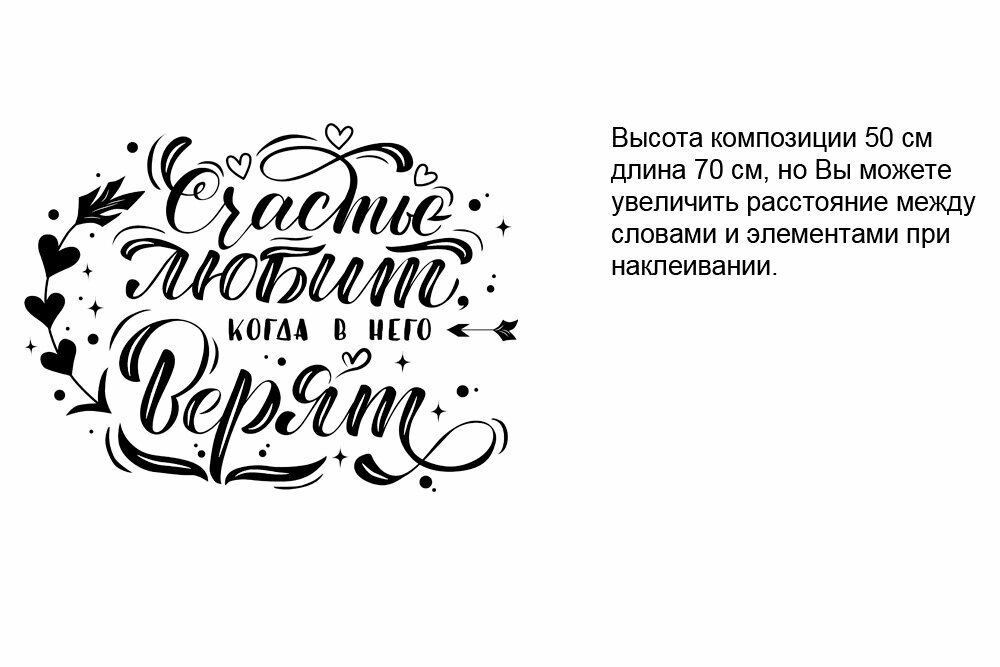 Наклейка интерьерная большого размера белая на стену "Счастье любит, когда в него верят", стикер на стекло, авто, металл, пластик, стену информация: