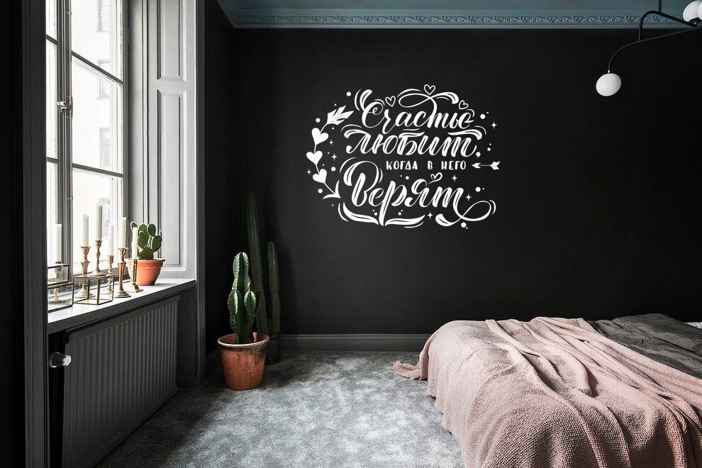 Отзывы на Наклейка интерьерная большого размера белая на стену "Счастье любит, когда в него верят", стикер на стекло, авто, металл, пластик, стену
