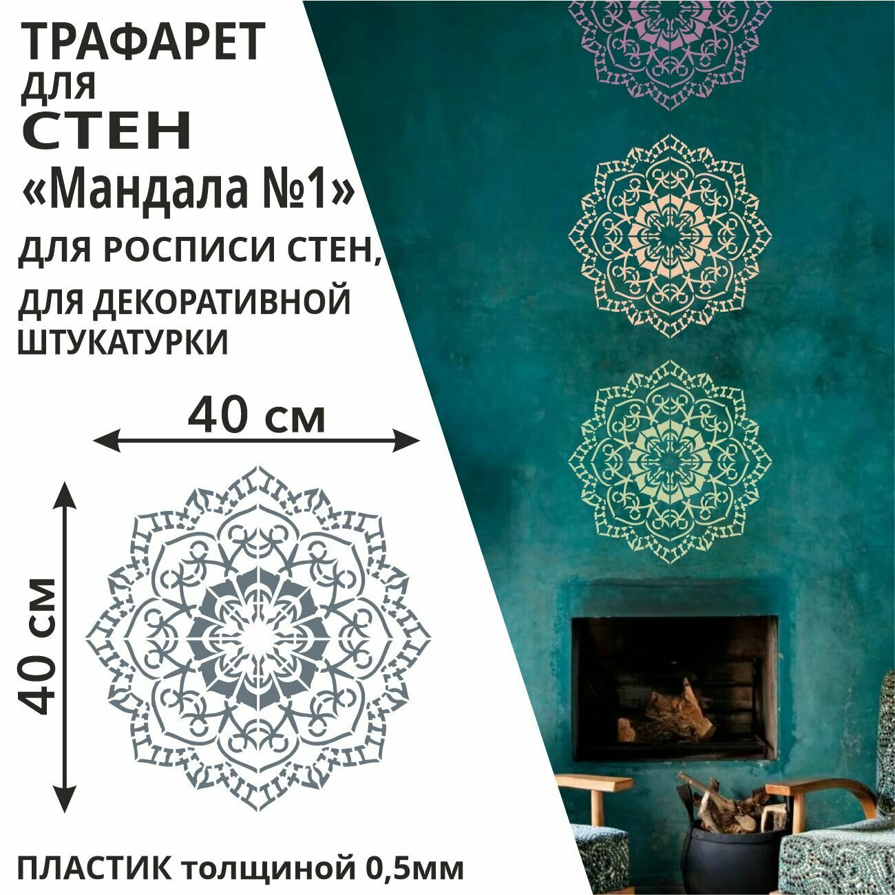 10 цен на Трафарет "Мандала №1" 42х42 см - для творчества и декора стен, мебели, плитки и штукатурки. Многоразовый, пластик 0,5 мм