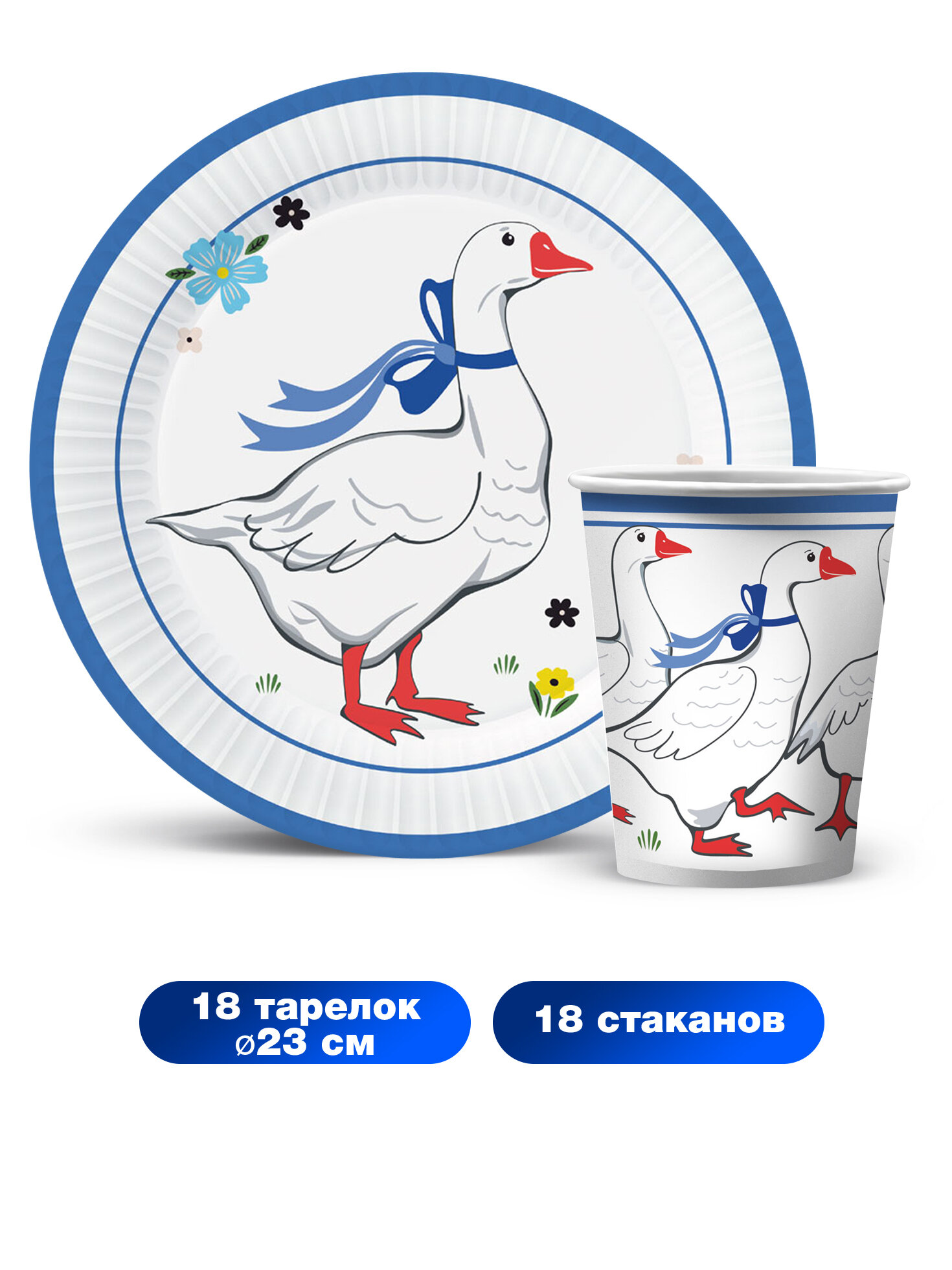 Набор для праздника Гуси-1 (тарелка бол, стакан, по 18 шт.) информация: